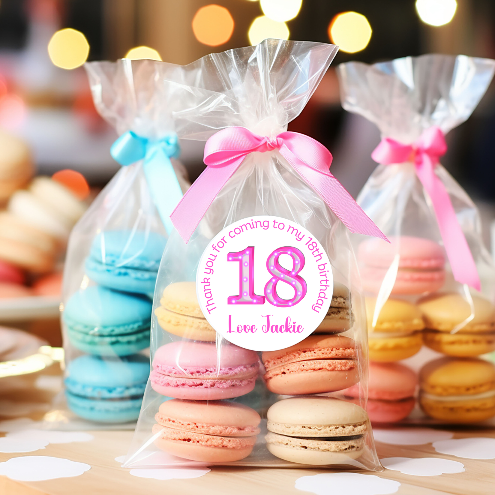 Add a personal touch to your party favours with our 18th"Thank You for celebrating with me" stickers. These adorable stickers can be personalised with your name making them the perfect way to express gratitude to your guests. Stick them on favour bags, gift boxes, or envelopes for a heartfelt touch. Say thank you in style with our personalised stickers!