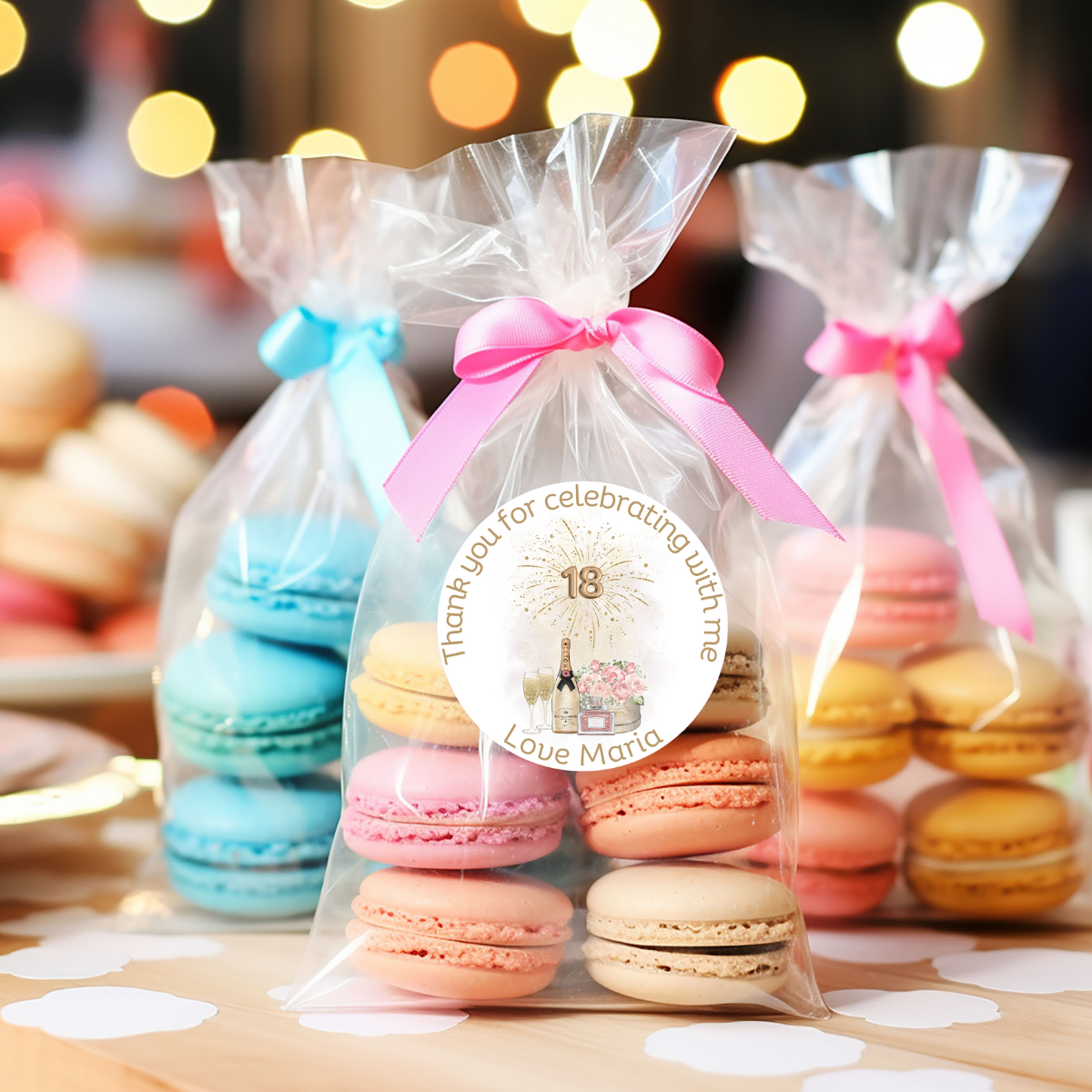 Add a personal touch to your party favours with our 18th"Thank You for celebrating with me" stickers. These adorable stickers can be personalised with your name making them the perfect way to express gratitude to your guests. Stick them on favour bags, gift boxes, or envelopes for a heartfelt touch. Say thank you in style with our personalised stickers!
