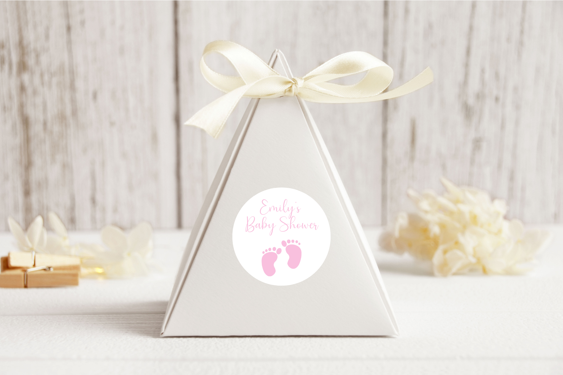 Elevate your baby shower favors with our Personalised Baby Shower Favour Stickers. Choose from gold, pink, or blue, each adorned with delicate baby feet. Show your appreciation with a personalized touch.