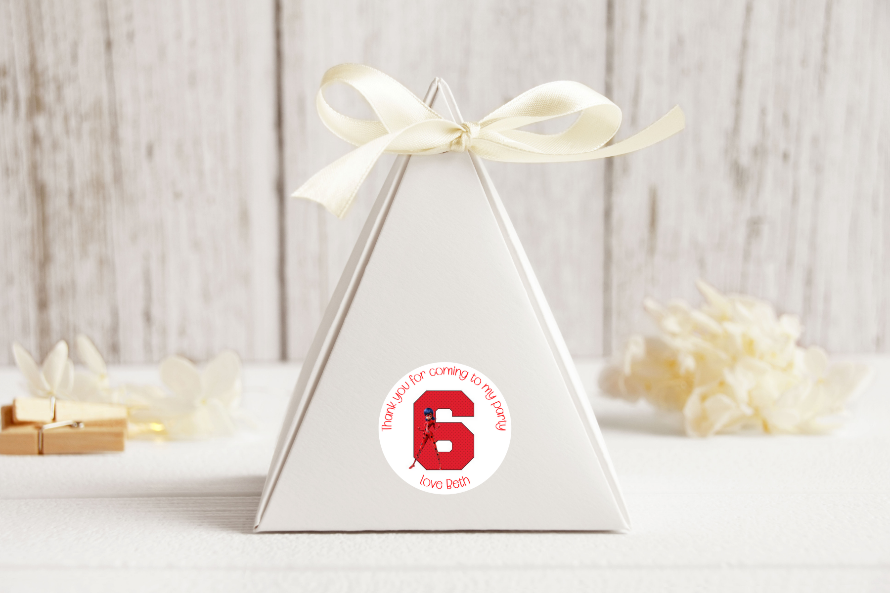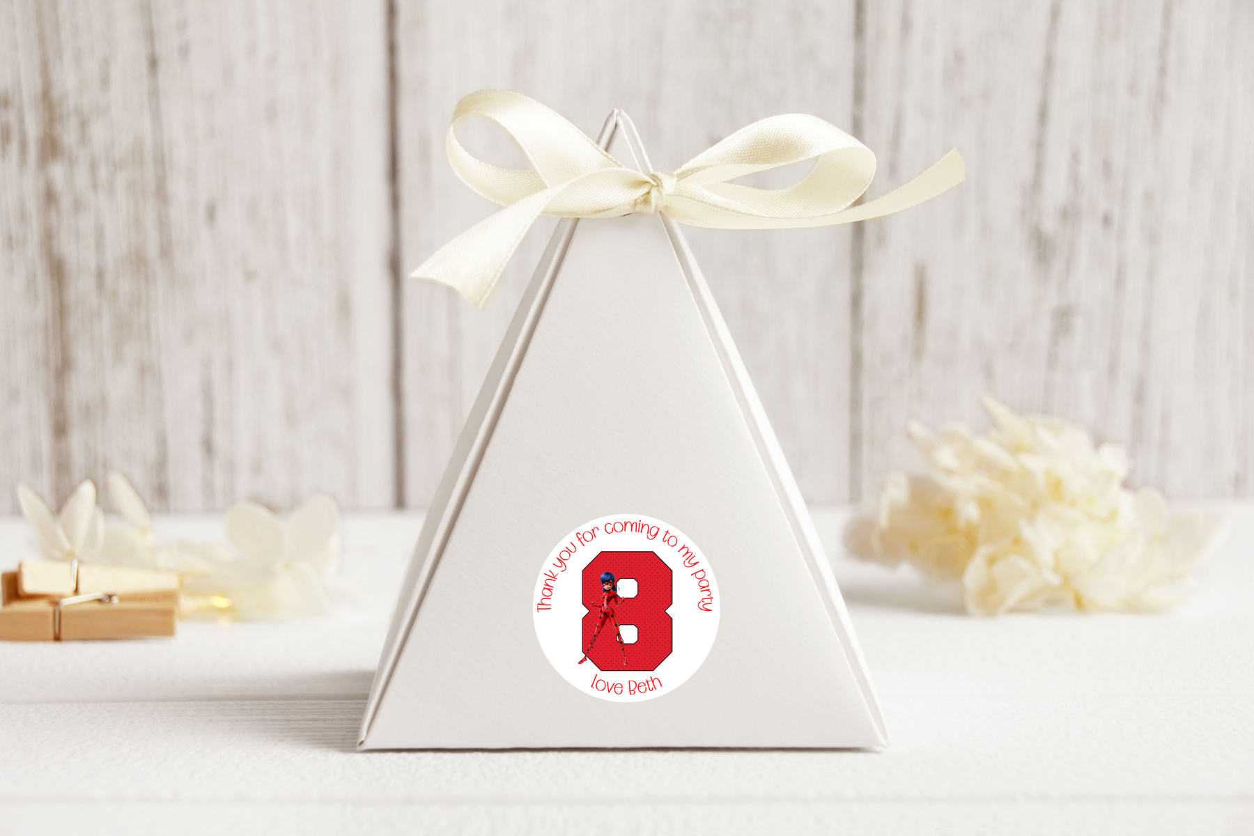 Add a personal touch to your party favours with our Miraculous Ladybug "Thank You for coming to my party" stickers. These adorable stickers can be personalised with your name making them the perfect way to express gratitude to your guests. Stick them on favour bags, gift boxes, or envelopes for a heartfelt touch. Say thank you in style with our personalised Miraculous Ladybug stickers!