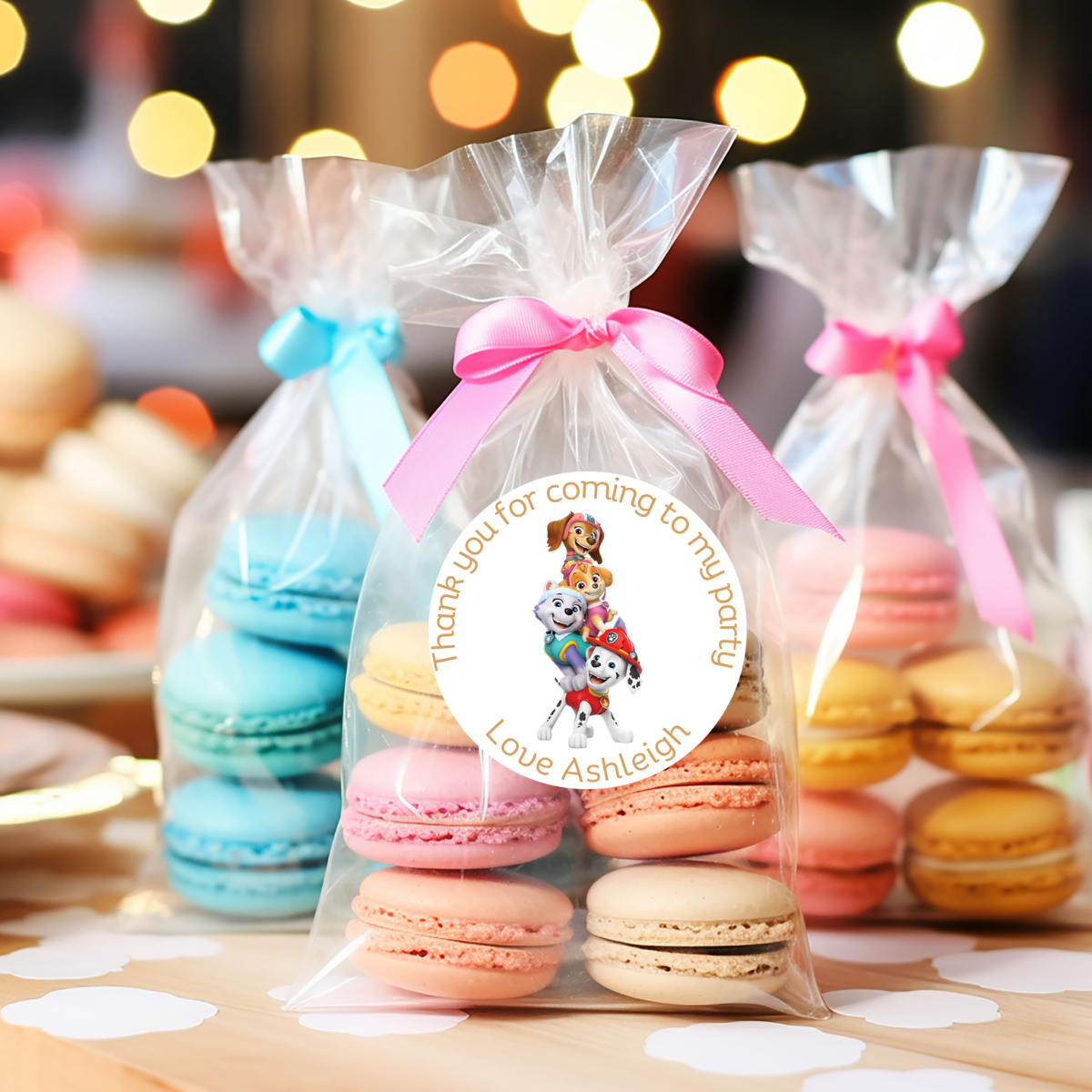 Add a personal touch to your party favours with our Paw Patrol "Thank You for coming to my party" stickers. These adorable stickers can be personalised with your name making them the perfect way to express gratitude to your guests. Stick them on favour bags, gift boxes, or envelopes for a heartfelt touch. Say thank you in style with our personalised Paw Patrol stickers!
