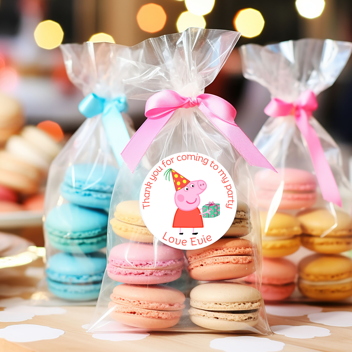 Add a personal touch to your party favours with our Peppa Pig "Thank You for coming to my party" stickers. These adorable stickers can be personalised with your name making them the perfect way to express gratitude to your guests. Stick them on favour bags, gift boxes, or envelopes for a heartfelt touch. Say thank you in style with our personalised Peppa Pig stickers!