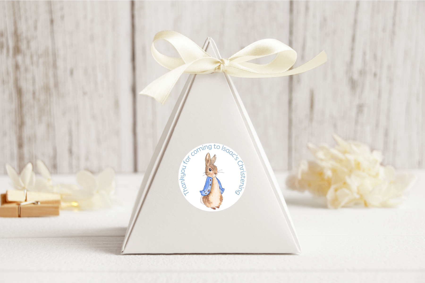 24 X Peter Rabbit Flopsy Thank You Baby Shower Stickers: Personalise Your Party Favours!