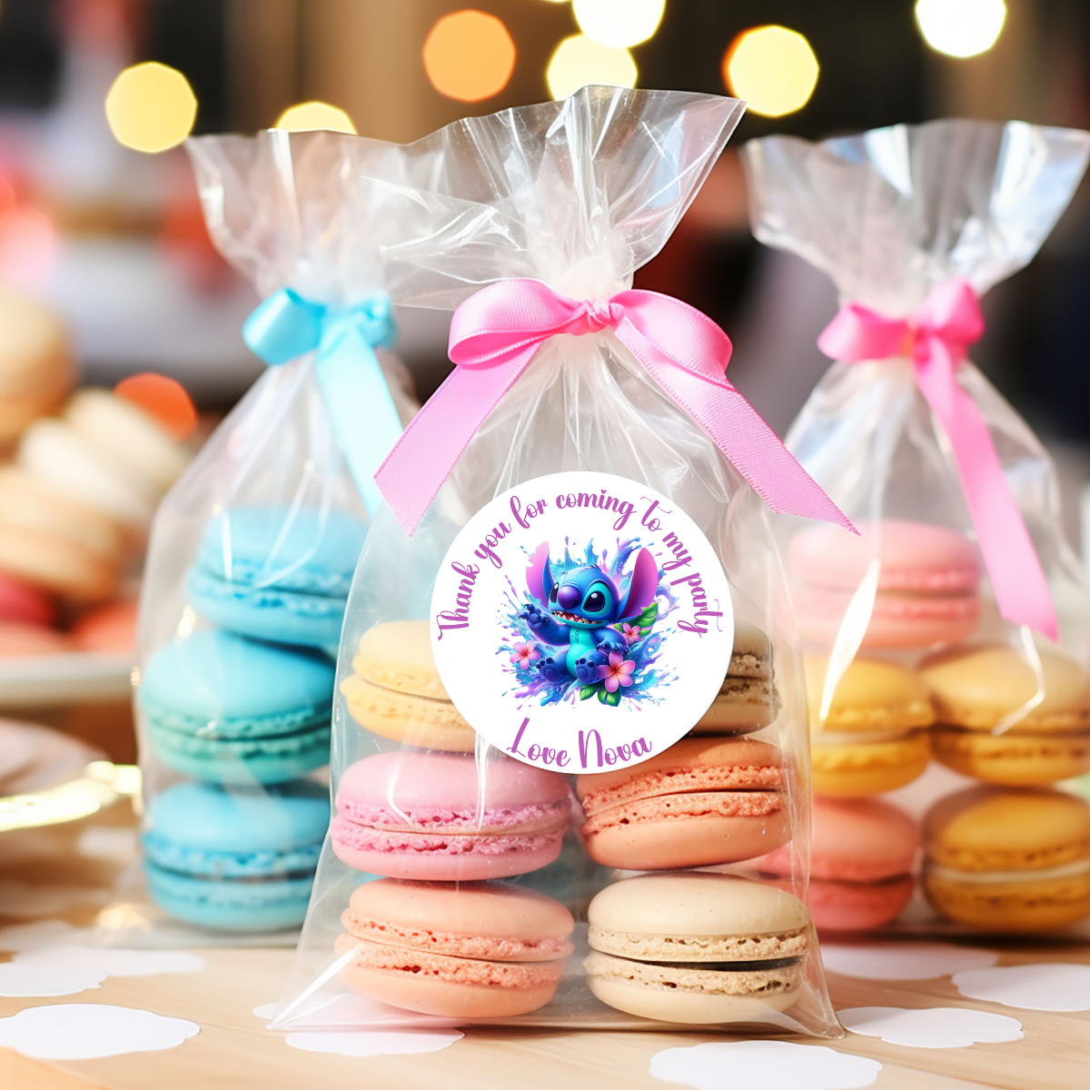 Add a personal touch to your party favours with our Stitch "Thank You for coming to my party" stickers. These adorable stickers can be personalised with your name making them the perfect way to express gratitude to your guests. Stick them on favour bags, gift boxes, or envelopes for a heartfelt touch. Say thank you in style with our personalised Stitch stickers!