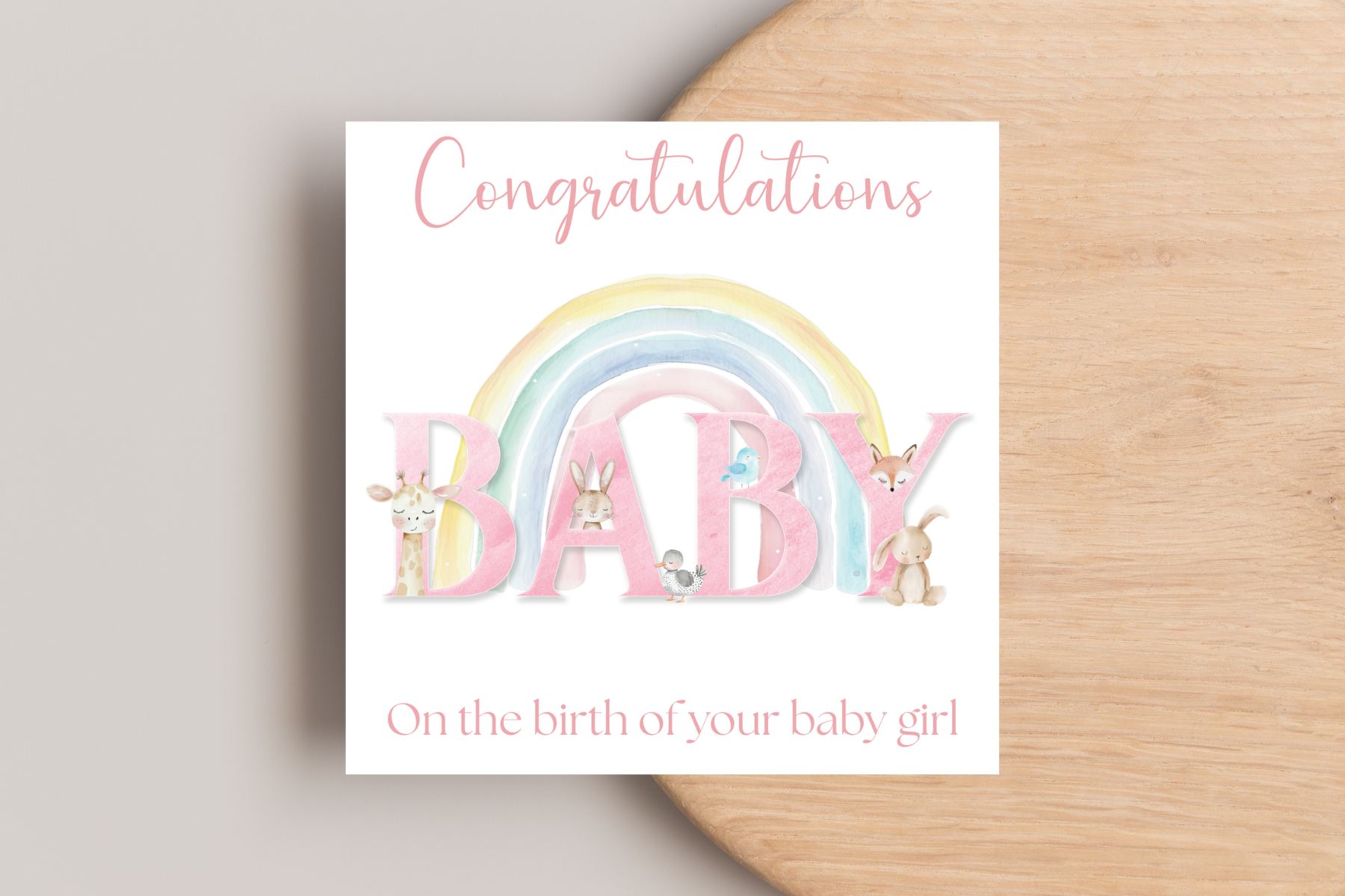 Animal Rainbow Baby Arrival Card