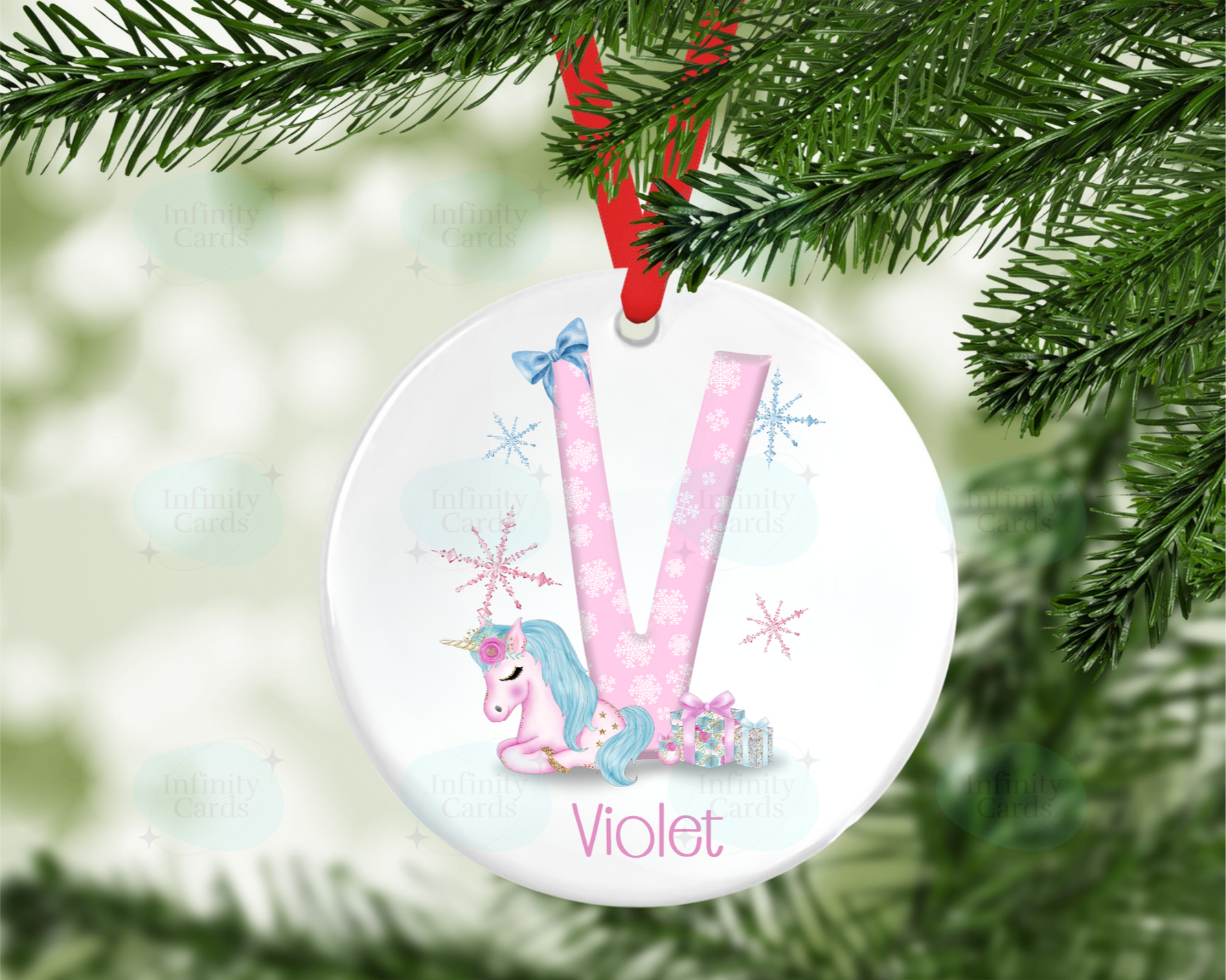 Add some magical charm to your Christmas tree with our Unicorn Initial Christmas Bauble! Available in two sizes and featuring a pink initial and festive pink and blue unicorn design, this bauble is perfect for fans of our magical friends.