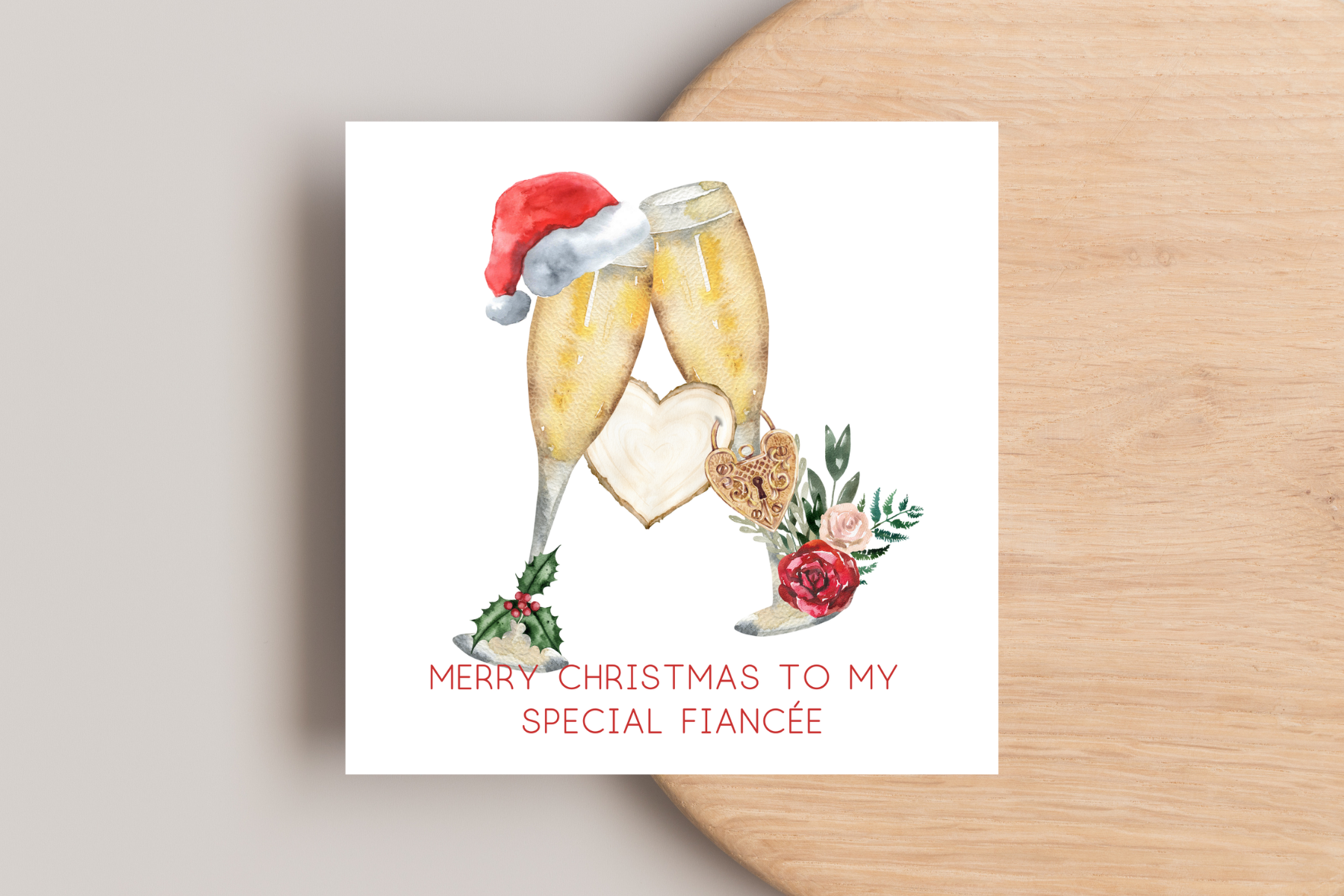 This Christmas, toast to your spouse with a festive card featuring champagne glasses and the words "Merry Christmas to My special fiancée/fiancé". Wish them a joyous holiday season with this elegant and heartfelt card. Perfect for expressing your love and appreciation during the most wonderful time of the year.