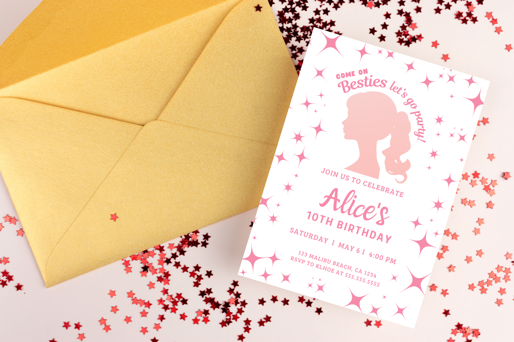 Introducing our exclusive Editable Barbie Party Invitation. Personalise every detail to make it truly your own. Perfect for a premium Barbie party experience that you and your guests will remember forever.
