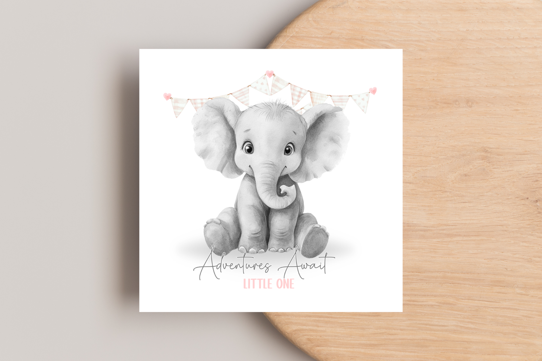 Elephant Adventure Awaits Little One Baby Arrival Card