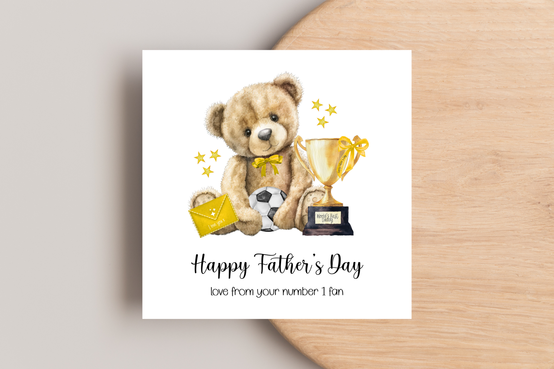 Let your dad know he's your number one fan with this Father's Day card. With its simple design and heartfelt message, this card is a perfect way to show your appreciation for all he does. Make him feel loved and valued on his special day.