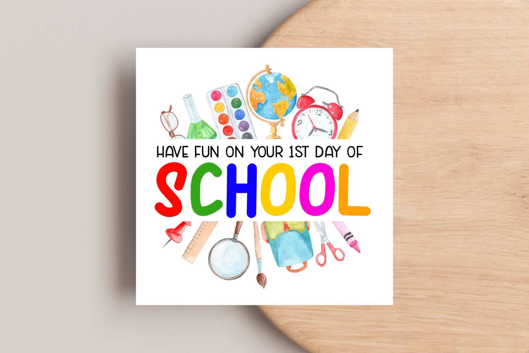 Celebrate a new school year with our "Have Fun On Your First Day of School" card. Show your support and excitement for the start of a new adventure. Perfect for students of all ages, this card is sure to put a smile on the recipient's face and make their first day even more special.