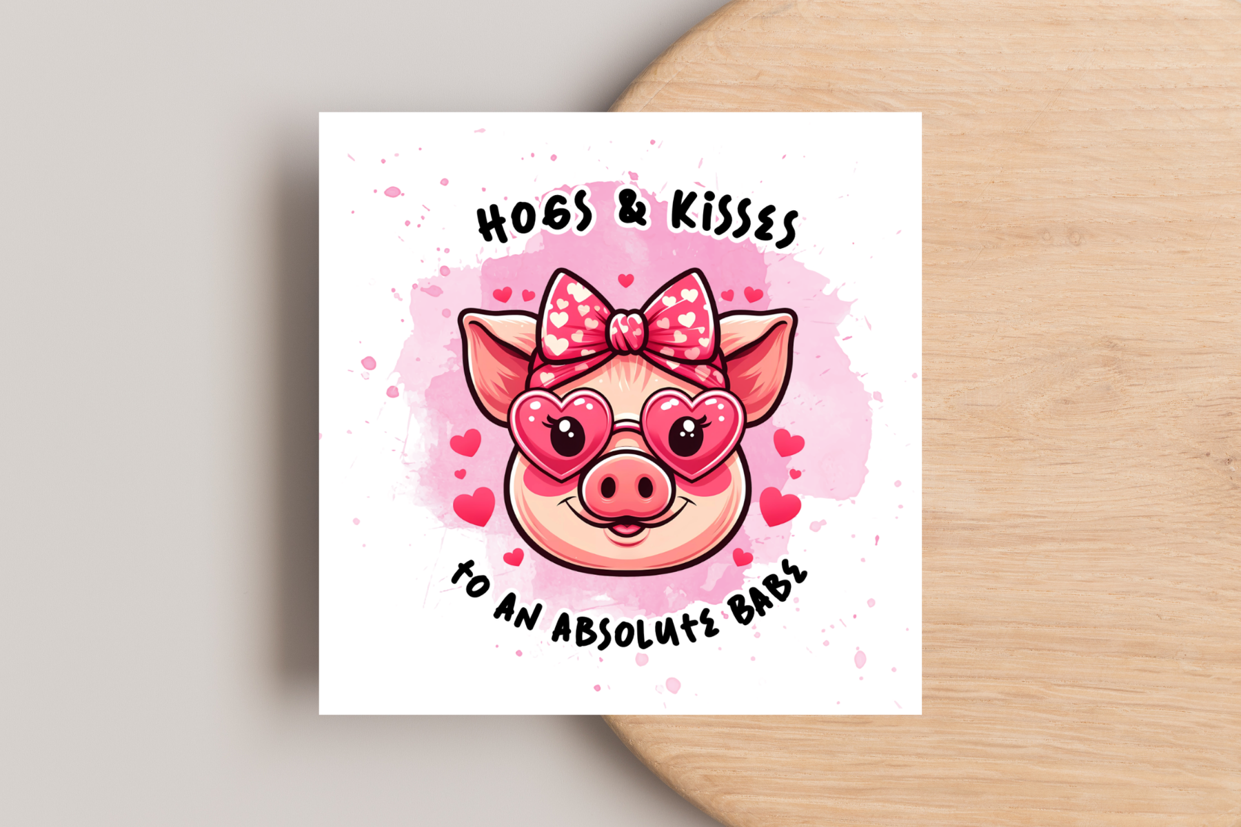 Celebrate your complete Babes birthday with our fitting birthday card. Design features an adorable pig with the words hogs and kisses to a complete babe around it.