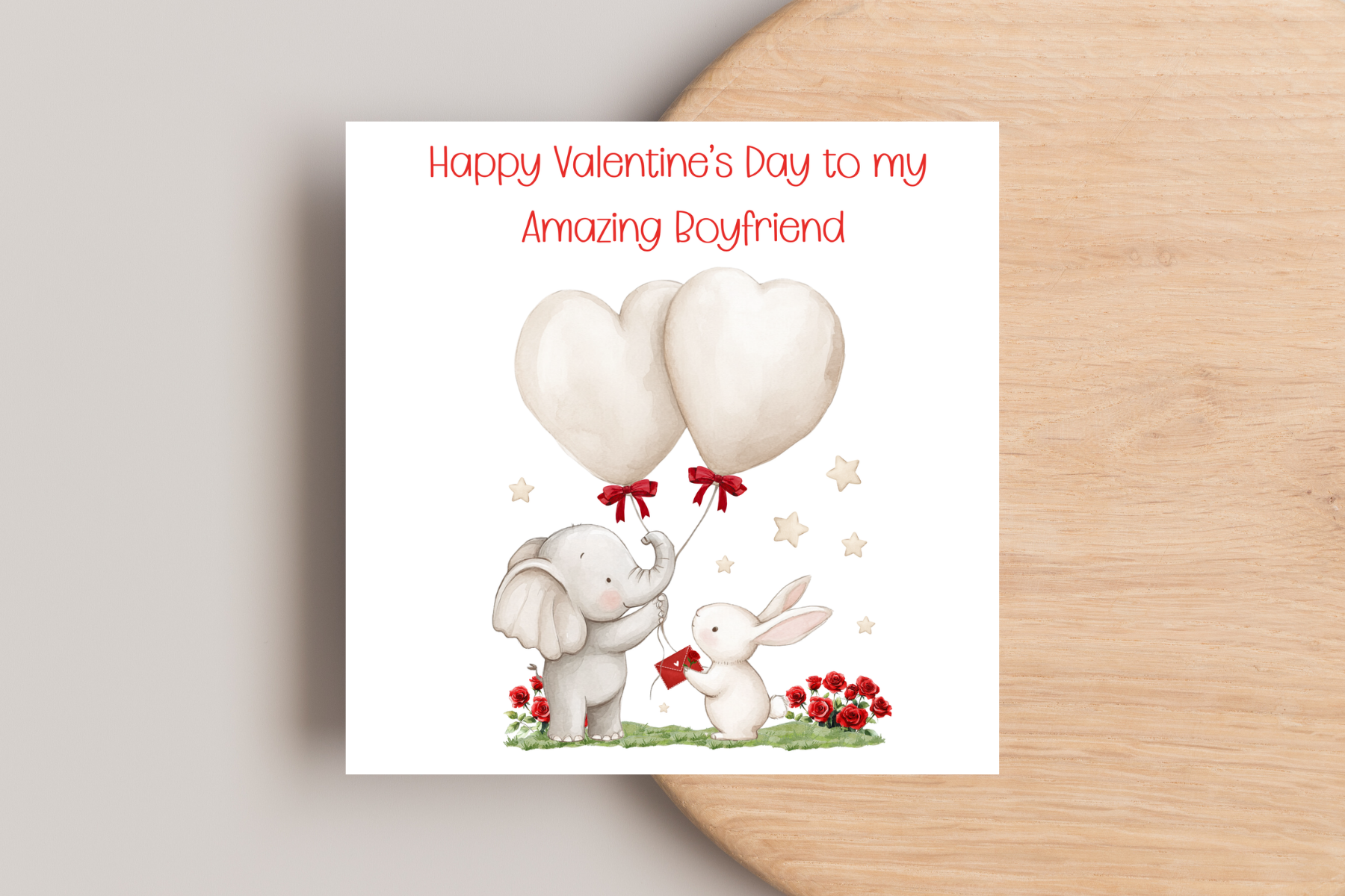 Share the love with our Loving Elephant Valentine's Day Card! Featuring a charming design of an elephant and bunny with Love You Balloons, this card is sure to make your loved one smile. Perfect for any fun and playful Valentine's Day celebration!