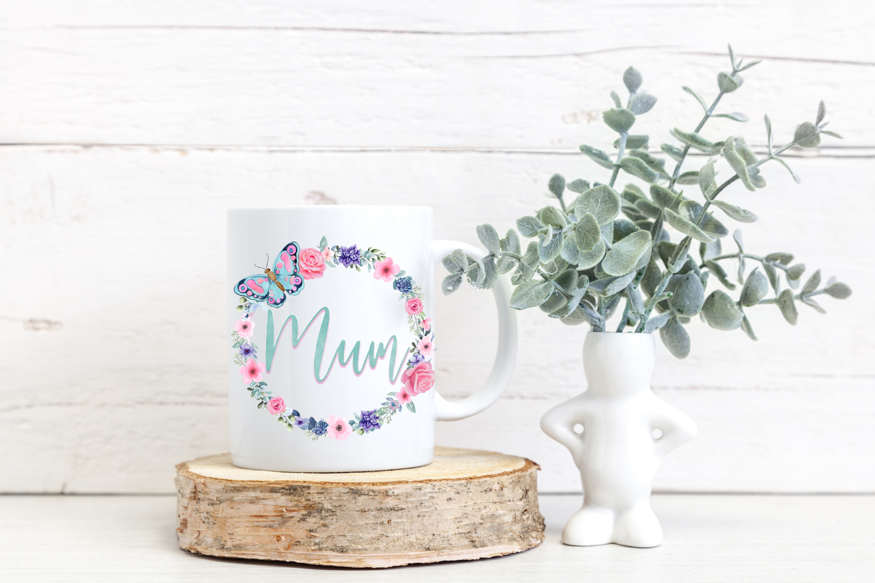 Elevate your morning ritual with our exquisite Mum Butterfly Wreath Mug. This refined 11oz ceramic vessel features an elegant butterfly wreath design, creating a sophisticated gift for the maternal figure in your life. Crafted for both beauty and practicality, this distinguished mug maintains its pristine appearance through dishwasher cycles and remains perfectly functional when heated in the microwave.