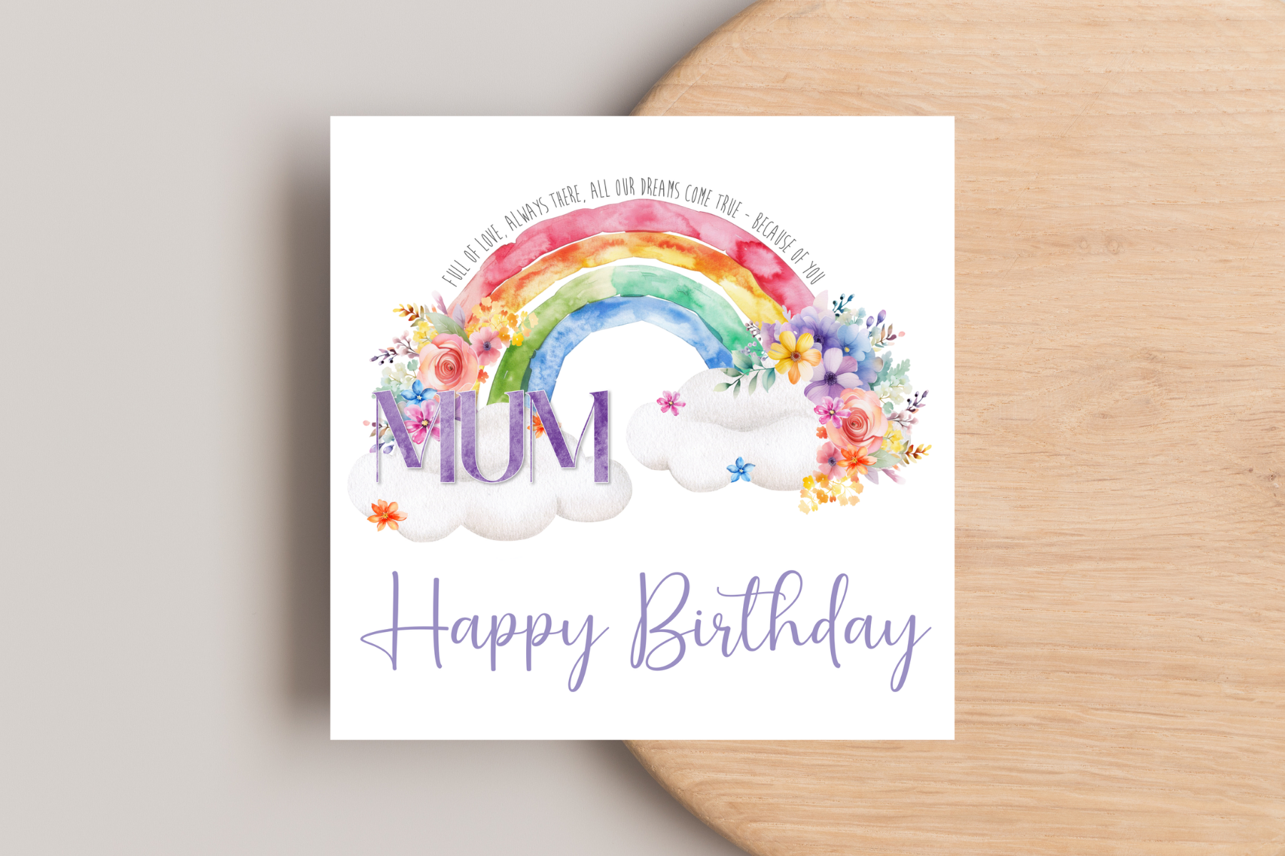 Celebrate your mum's special day with our Mum full of Love, always there Birthday Day Card! Featuring a beautiful floral rainbow design, this card is the perfect way to show your love and appreciation for all that she does. Send her a heartfelt message and make her feel truly honoured to be your mum.
