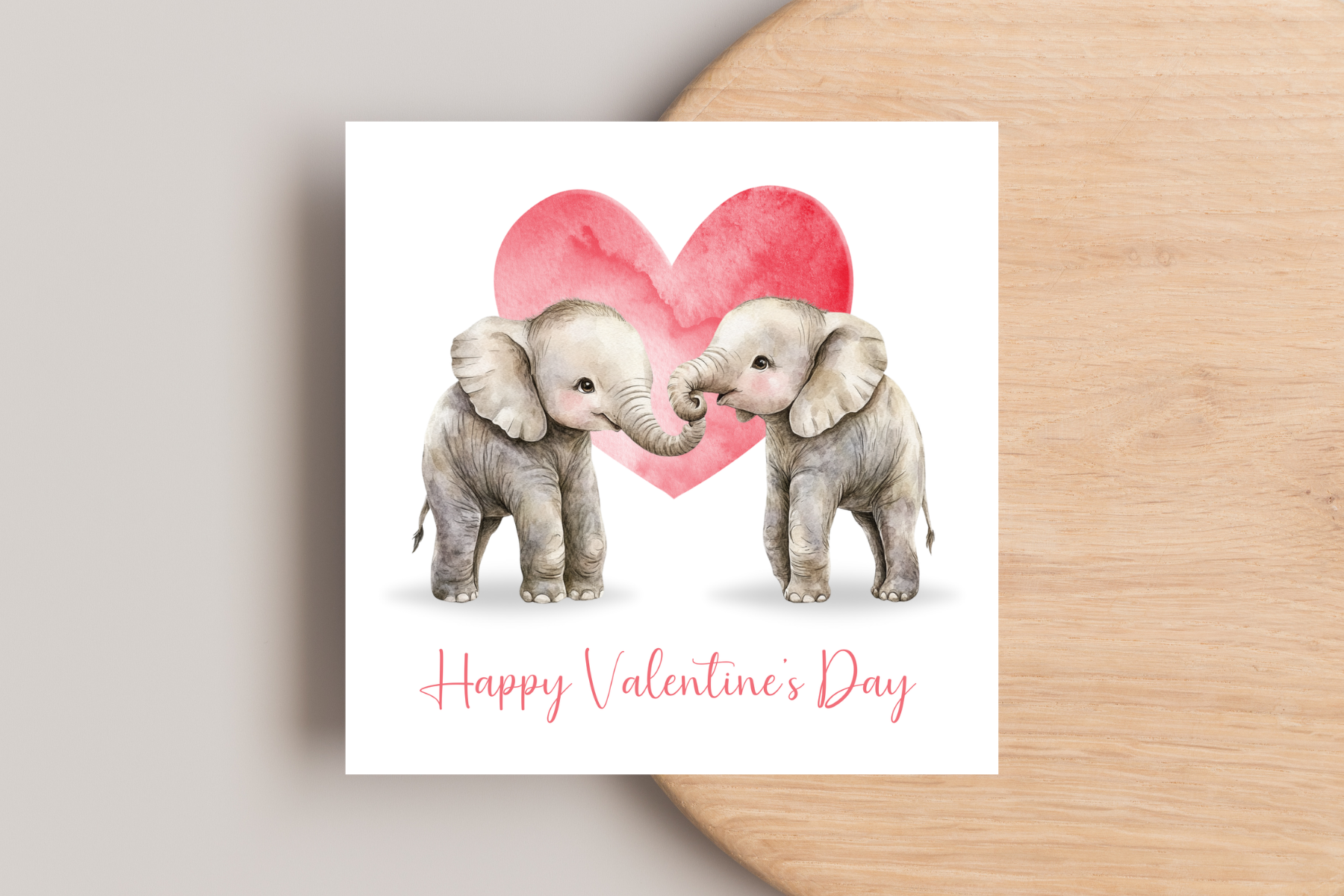 Express your everlasting love with our loving elephants valentines day card. Featuring a red heart and two elephants trunk to trunk, this card is the perfect gift for Valentine's Day. Let your loved one know they are always in your heart.