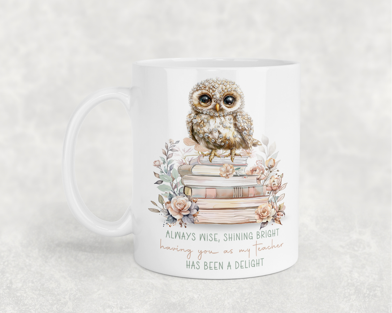 Celebrate your teacher’s wisdom with this elegant Owl Teacher Appreciation Mug. Featuring a charming owl perched on a stack of books, it bears the heartfelt message: “Always wise, shining bright. Having you as my teacher has been a delight.” Crafted to honour dedication and inspire gratitude, this mug is a refined gift that combines thoughtful design with meaningful sentiment. Perfect for daily use, it serves as a lasting reminder of appreciation and respect.