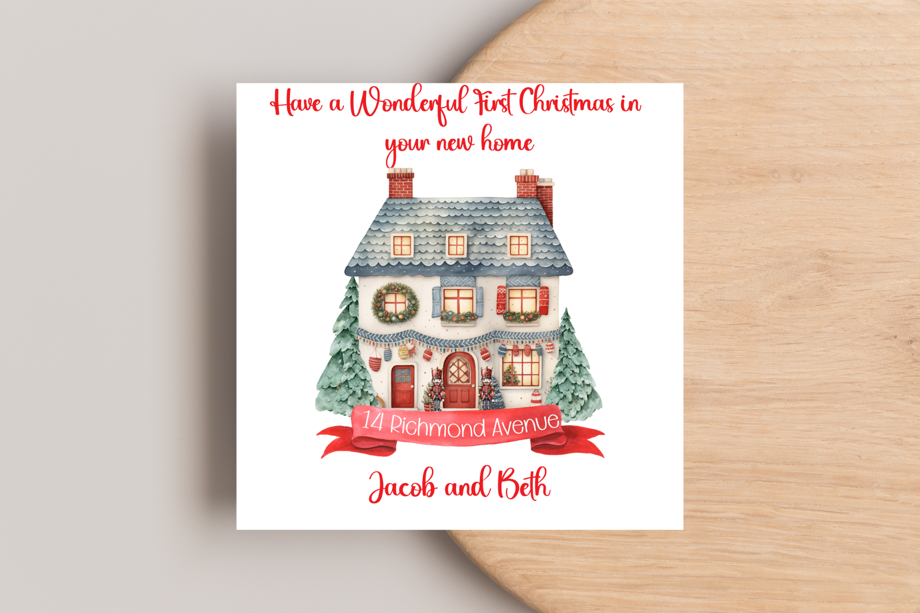 Celebrate the new homeowners with our personalised 1st Christmas in New Home Christmas Card! Add their house name and their names for a thoughtful touch. Wish them happiness and warmth in their new home this holiday season.
