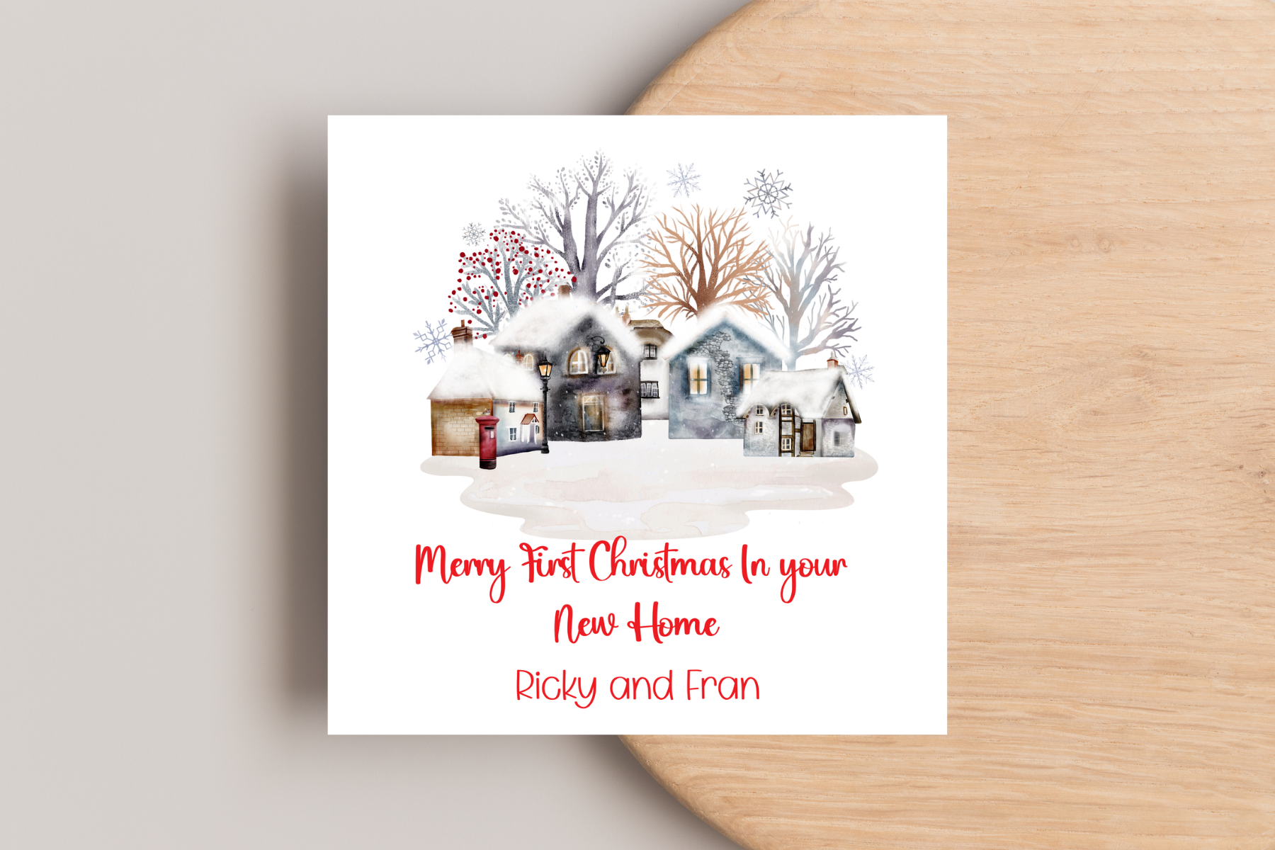 Celebrate the new homeowners with our personalised 1st Christmas in New Home Christmas Card! Add their house name and their names for a thoughtful touch. Wish them happiness and warmth in their new home this holiday season.