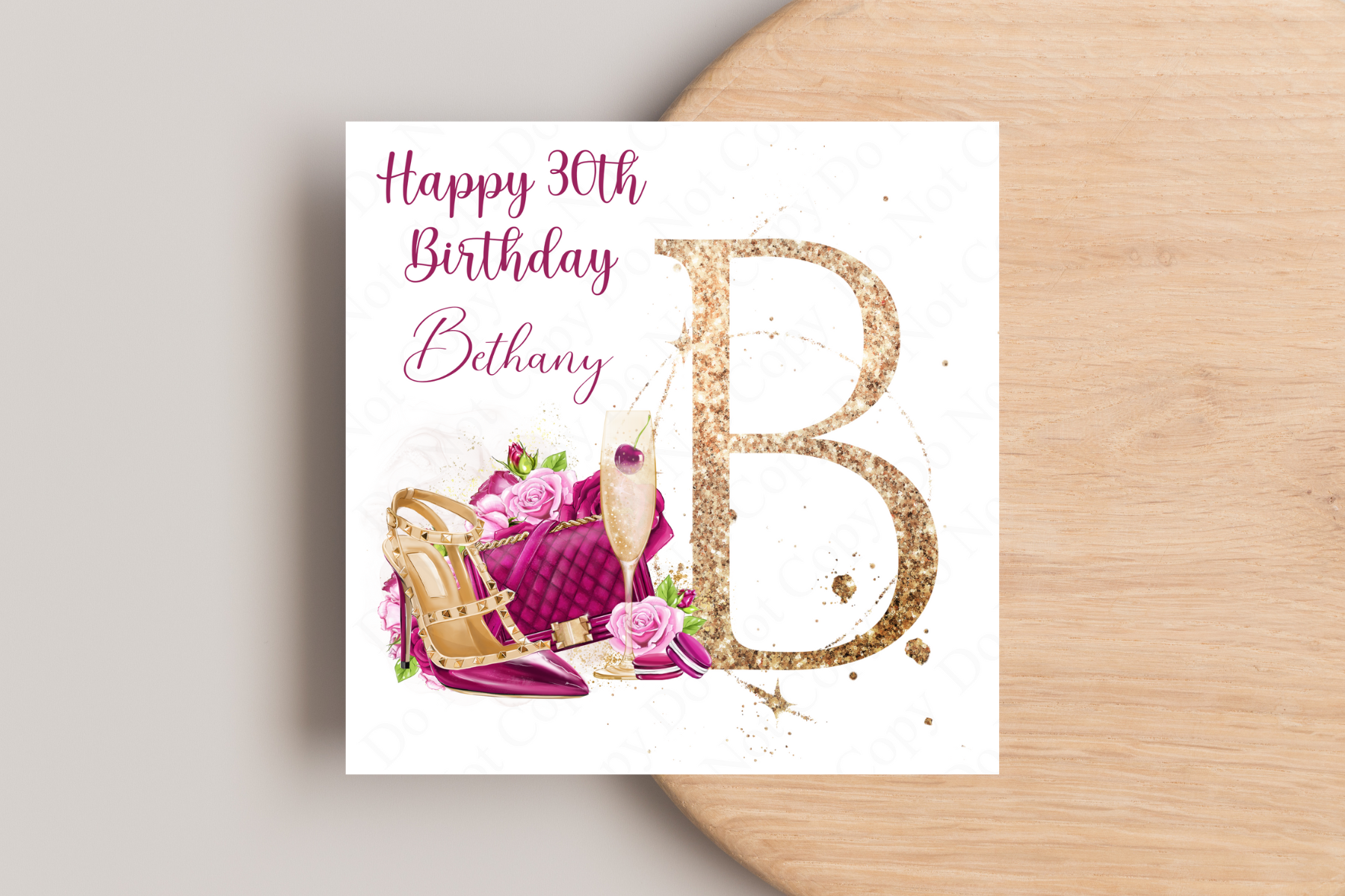 Celebrate her special milestone with our Personalised Birthday Card. This unique card features stunning pink items -champagne, flowers and heels, making it the perfect birthday card for her special day.