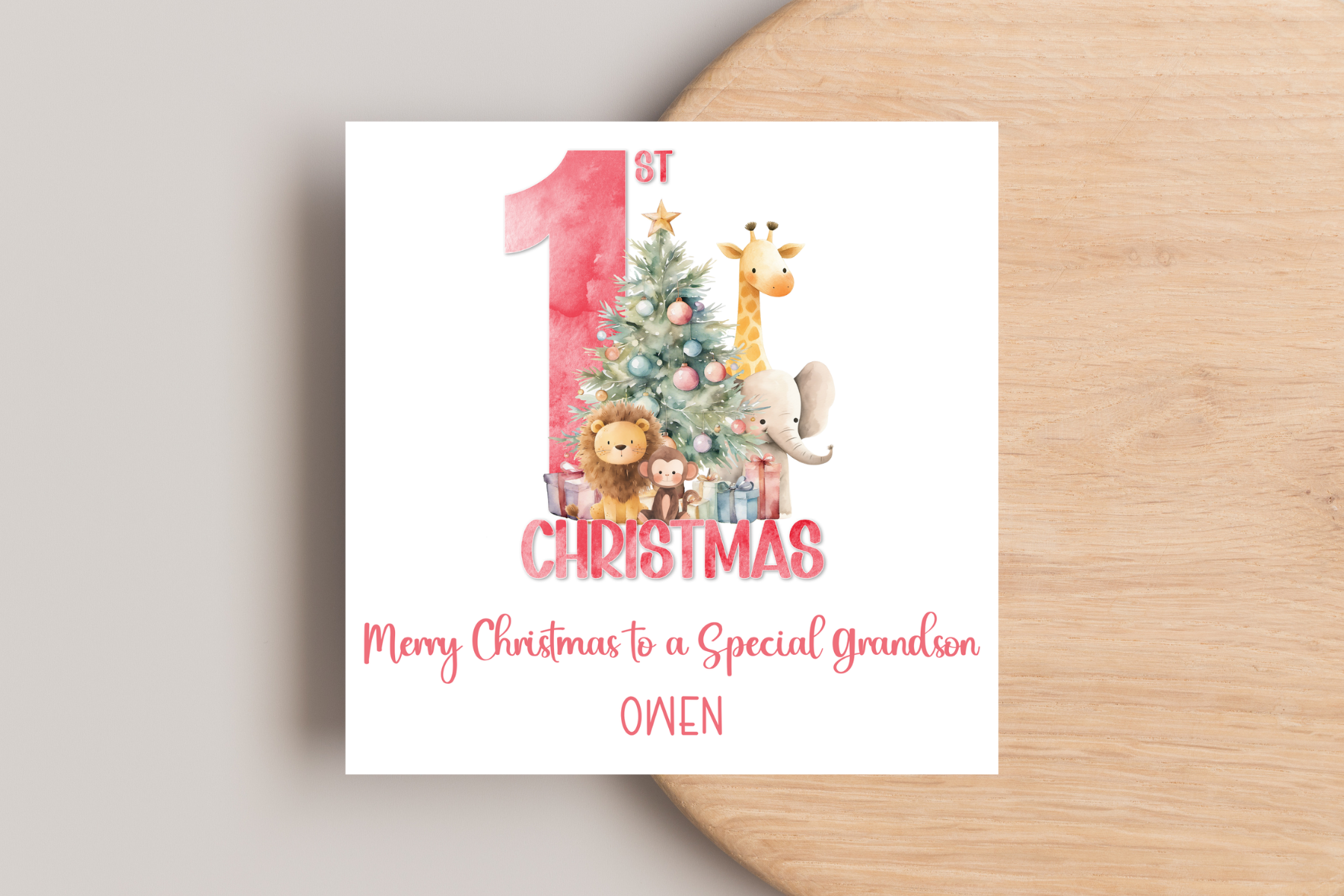Celebrate a little one’s milestone with this Personalised animal First Christmas Card. Available in red, blue, yellow and pink, the card adds a heartfelt and gentle touch to your festive greetings. Its sweet animal design and personalised option make it a keepsake to cherish for years while spreading holiday joy to family and friends.