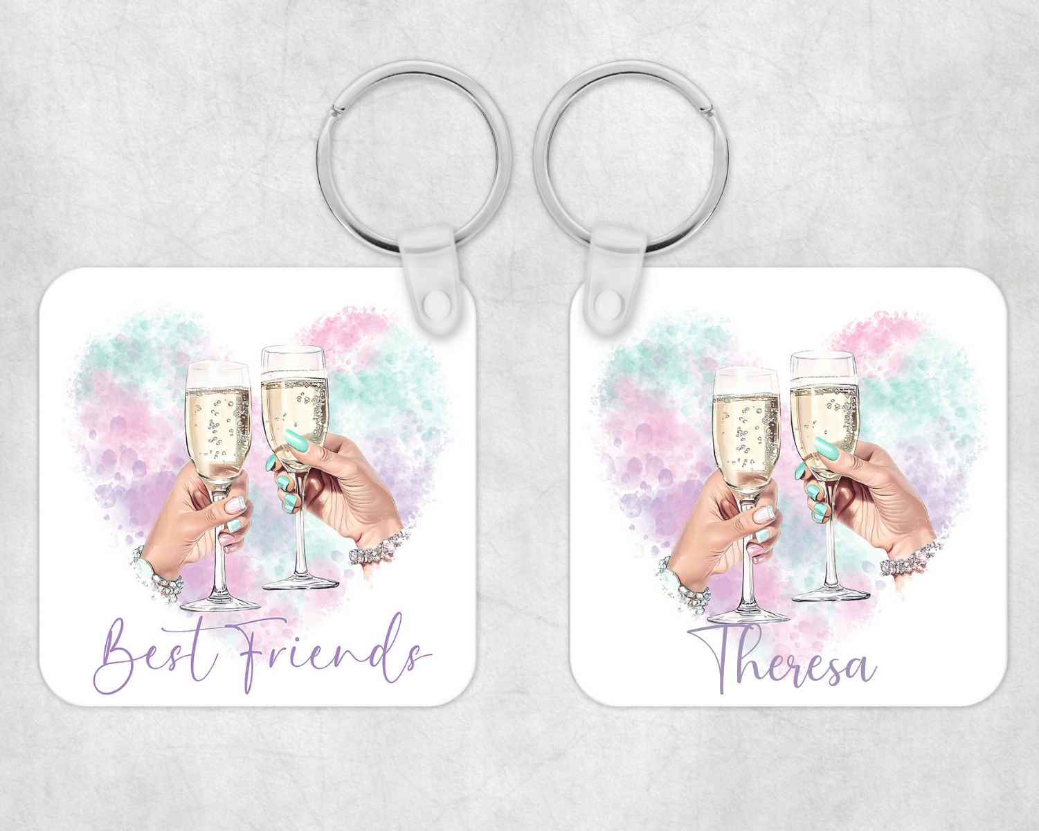 Celebrate friendship with a playful twist using this Personalised Best Friends Keyring. Featuring a fun champagne cheers design on both sides, one side says "Best Friends" while the other shows your name. It’s the perfect little charm to keep your bestie close and share smiles every day.