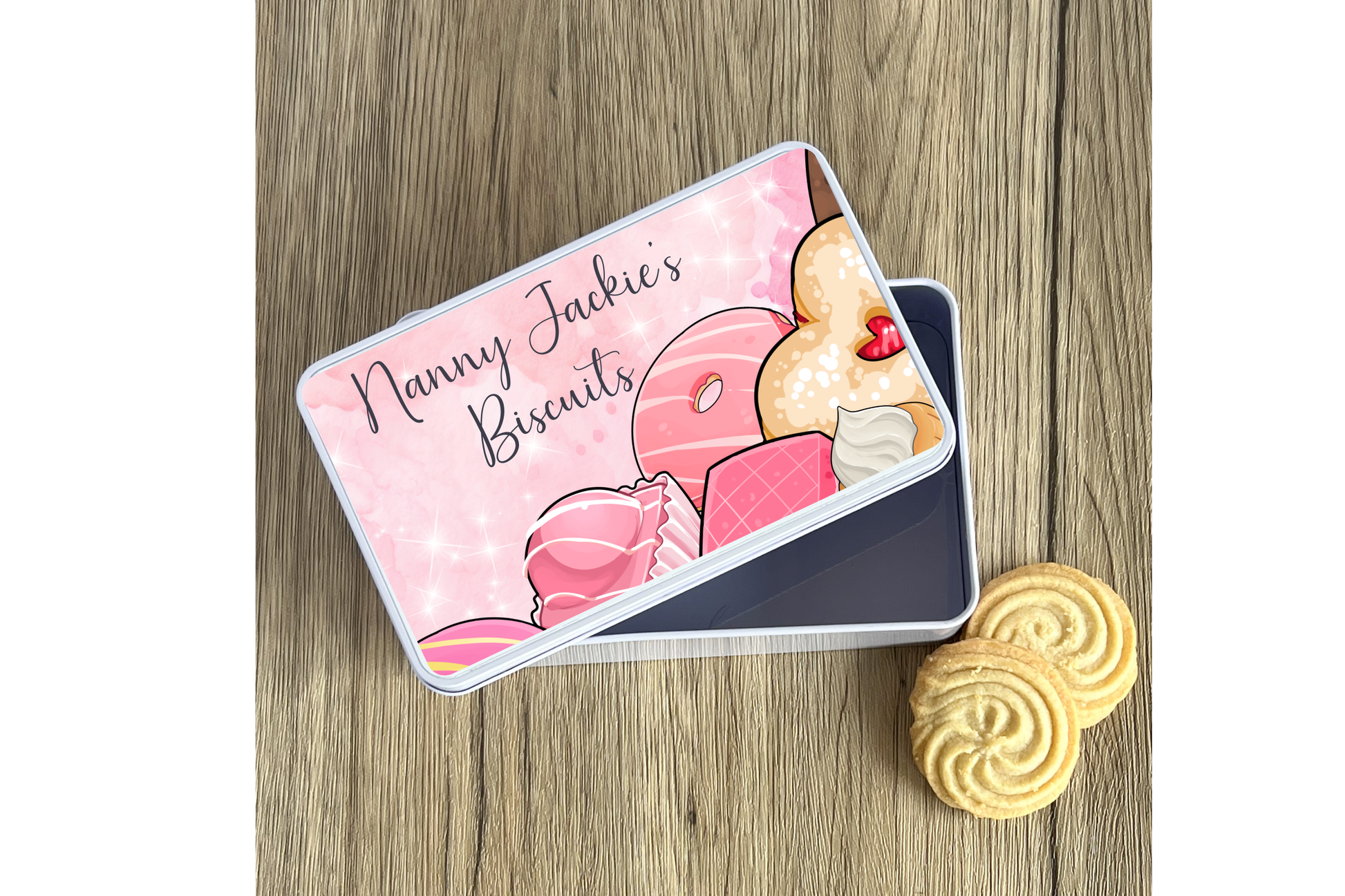 Store your favourite biscuits in this personalised tin with a design of your choosing. A perfect gift for any biscuit lover!
