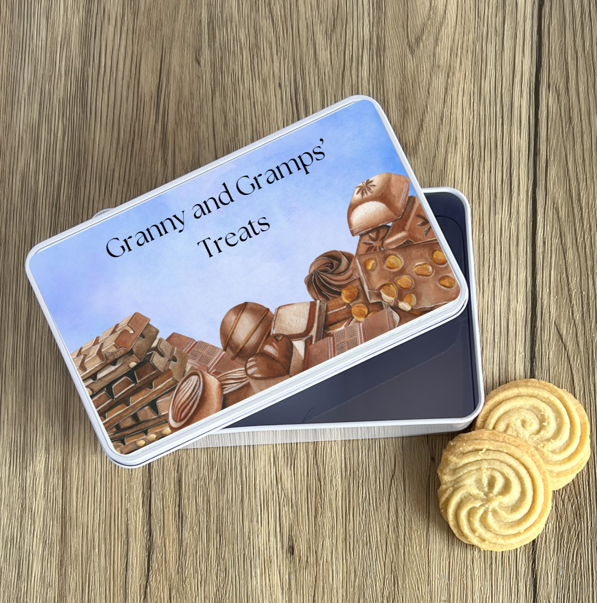 Store your favourite chocolate treats in this personalised tin with a design of your choosing. A perfect gift for any sweet treat lover!