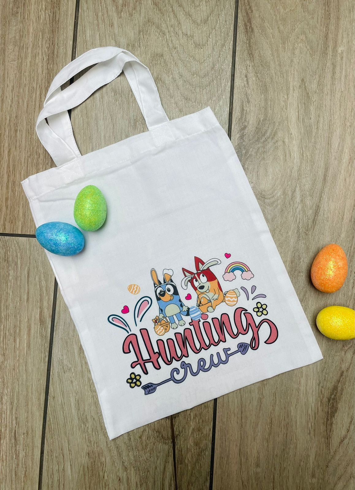 This Personalised Bluey Hunting Crew Easter bag is perfect for your Easter egg hunt. Made with high-quality materials, it will keep your treats safe while adding an adorable touch to your festivities. With its unique personalization feature, it also makes for a special and thoughtful gift for your loved ones.