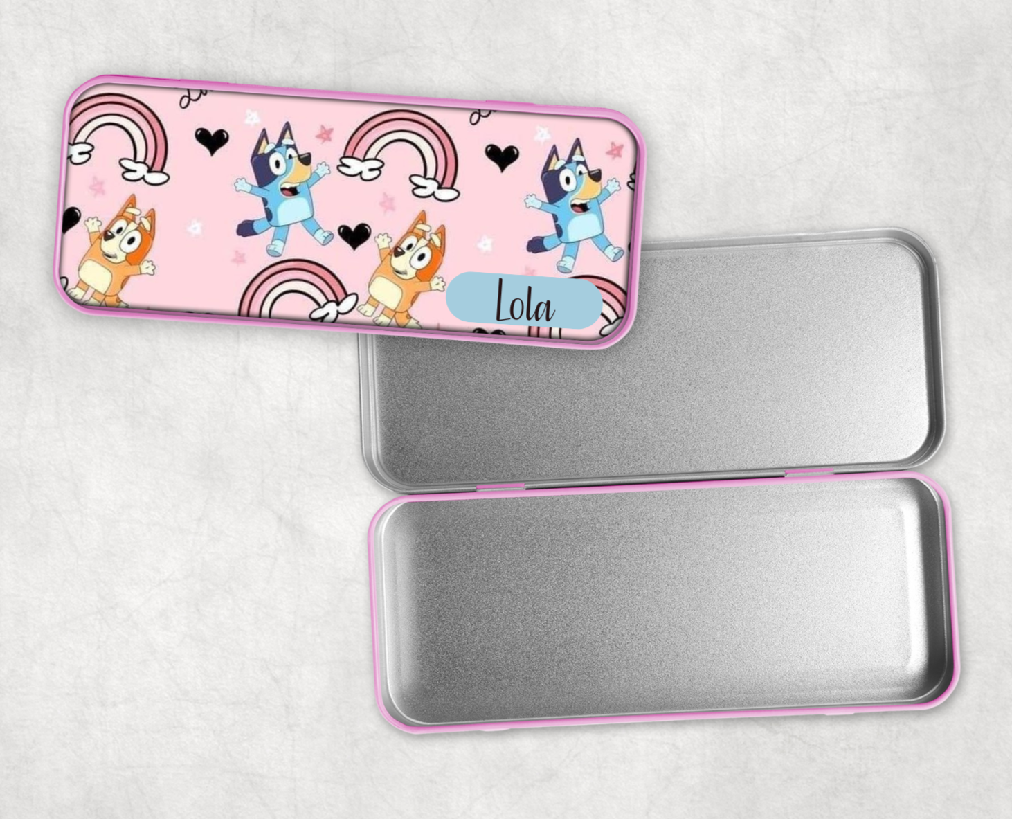 Keep your pencils safe and stylish with our Personalised Bluey Pencil Tin! Featuring everyone's favourite bluey characters, this tin can be customised with your name or initials. Perfect for school or office supplies.