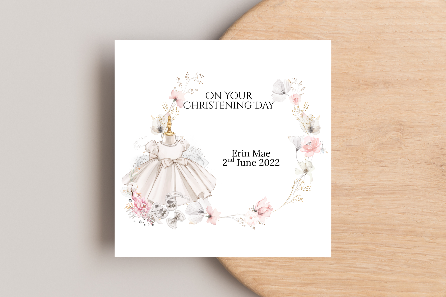 Celebrate a special day with our Personalised Christening Day Card. With a beautiful wreath design, personalise it with the child's name and date. Choose from our boy or girl design options. Share the joy with sophistication and exclusivity.
