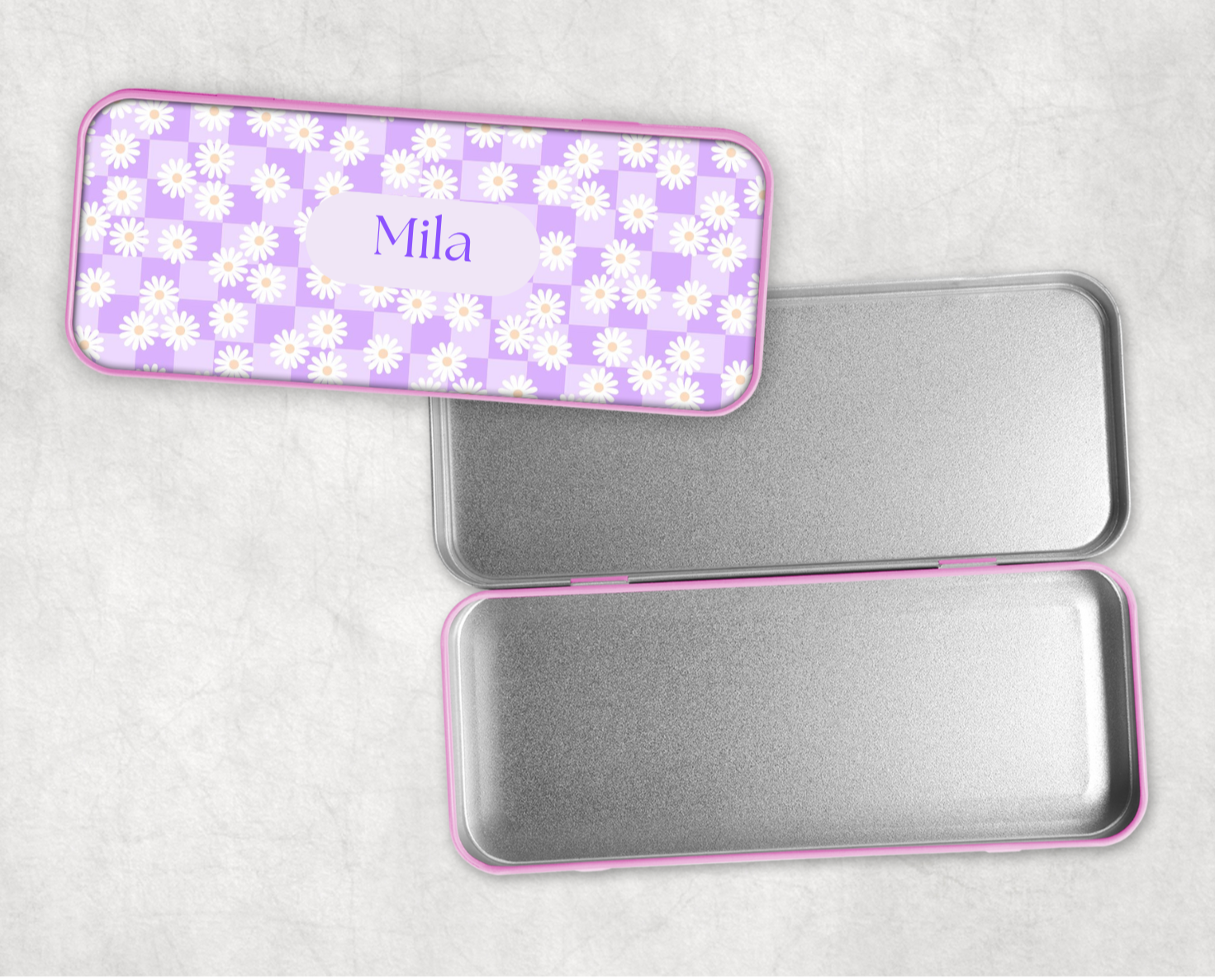 Keep your pencils safe and stylish with our Personalised Daisy Pencil Tin! Featuring a beautiful design, this tin can be customised with your name or initials. Perfect for school or office supplies.