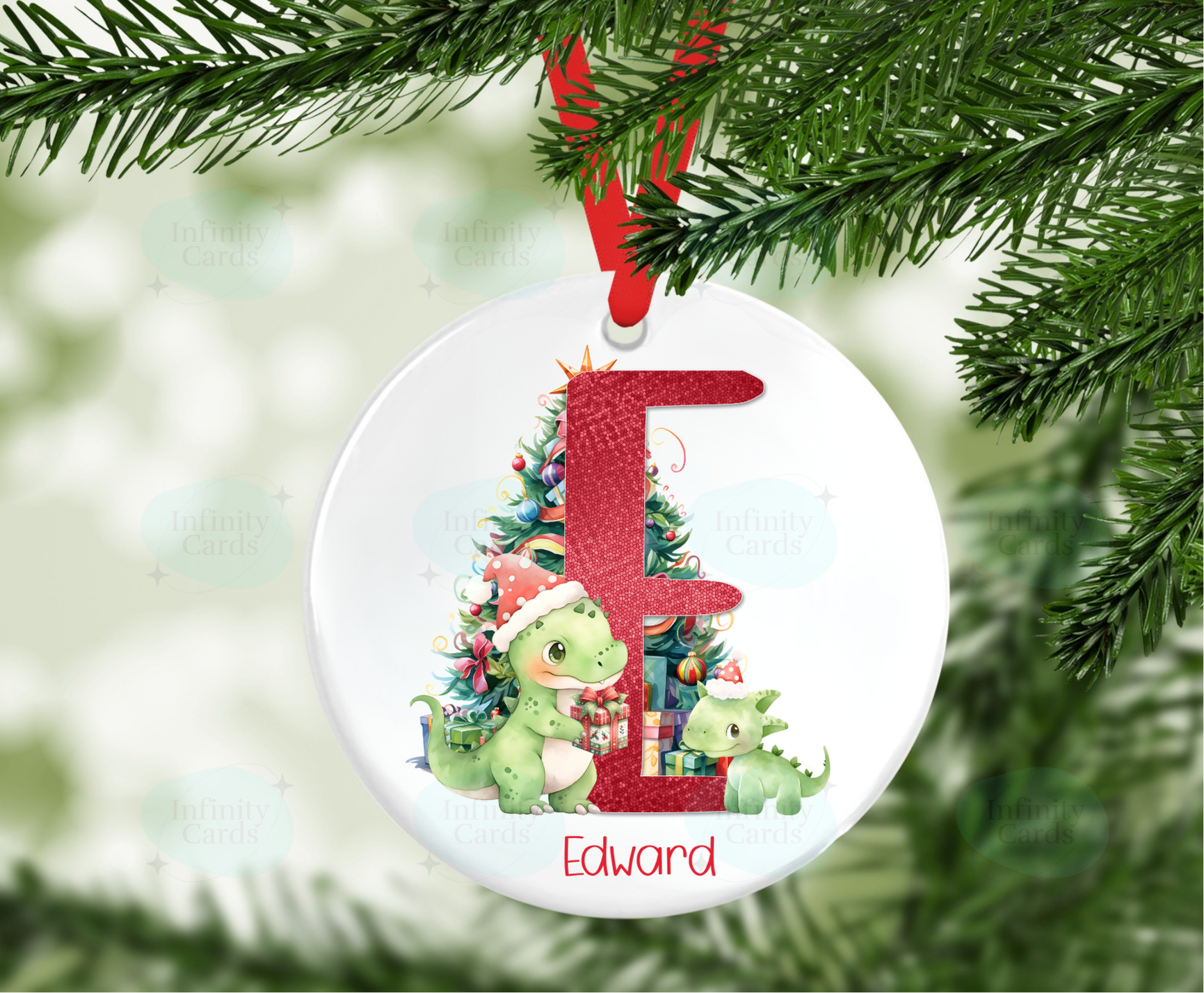 Add some prehistoric charm to your Christmas tree with our Dinosaur Initial Christmas Bauble! Available in two sizes and featuring a green initial and festive dinosaur design, this bauble is perfect for fans of our ancient friends. (Roar!)