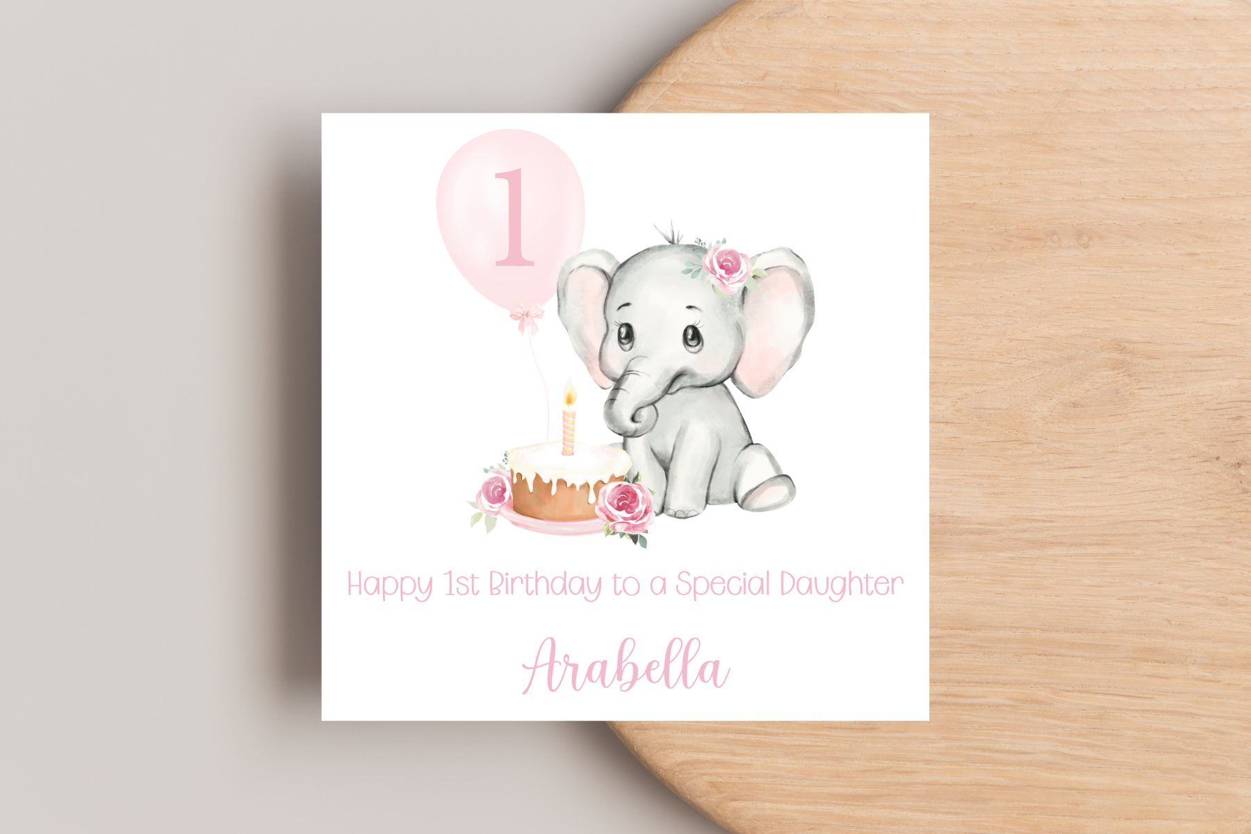 Celebrate a special little one's first birthday with our Personalised Elephant 1st Birthday Card. Featuring a charming elephant design and customisable with a name, this card is the perfect way to send warm wishes. Show your thoughtfulness and make their day even more memorable!