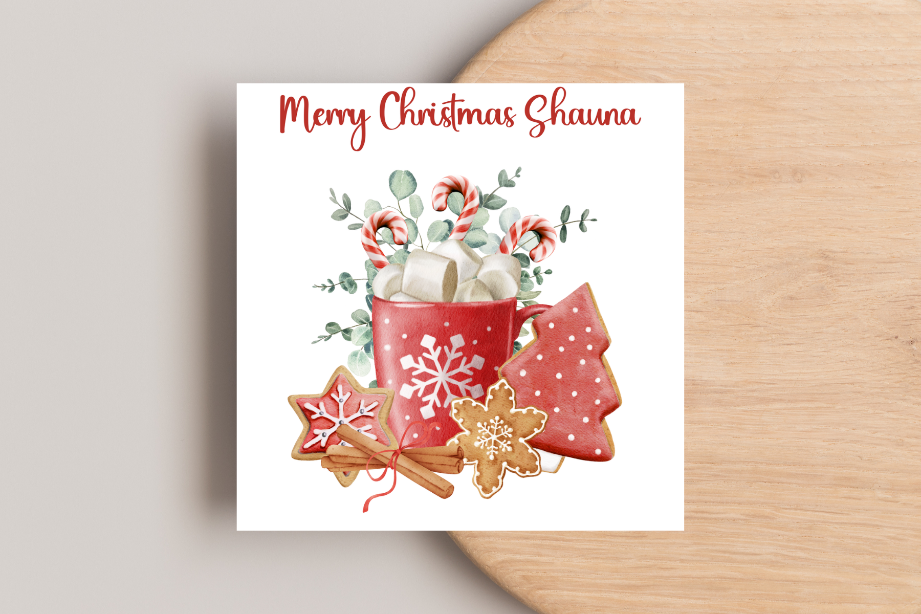 Indulge in the warmth and coziness of the season with our Personalised Winter Comforts Christmas Card. Featuring mouth-watering cookies and rich, creamy hot chocolate, this card is perfect for sending warm holiday wishes to loved ones. Personalise it for an extra special touch.