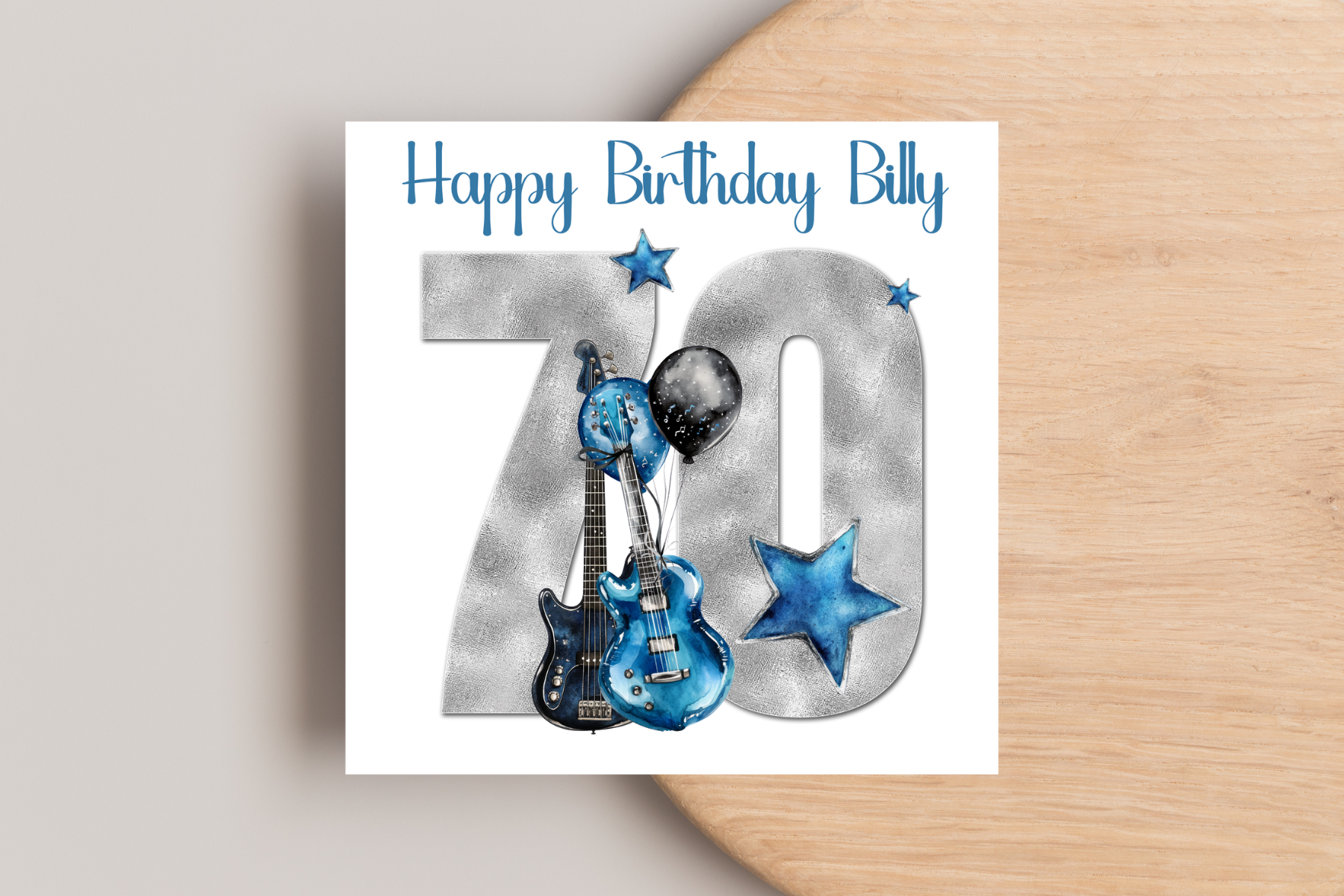 Celebrate a special birthday with this Personalised Guitar 70th Birthday Card, designed to strike the perfect chord with music lovers. Customise it to add a unique touch that shows you care, making the recipient feel truly appreciated on their big day. This card combines thoughtful design with personal sentiment, creating a memorable keepsake for any guitar enthusiast.