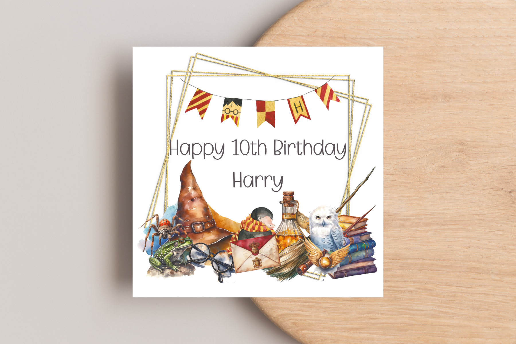 Our unique design combines simplicity with the latest trends, making it a standout choice for Harry Potter enthusiasts. The card can be personalised with the recipient's name and age, adding a special touch to their birthday surprise. Whether it's for a child or a devoted Harry Potter fan, this birthday card is sure to make their day truly magical.