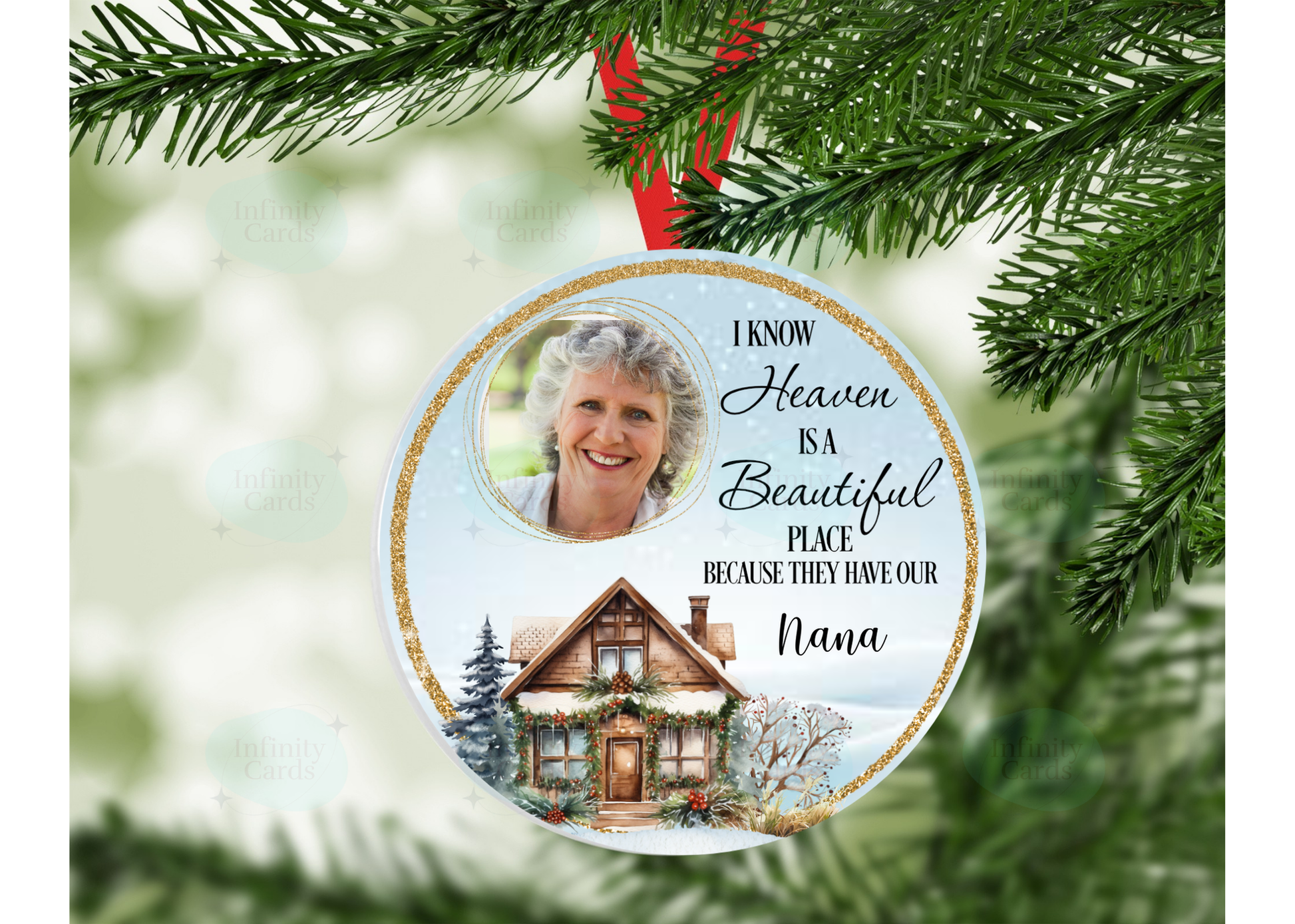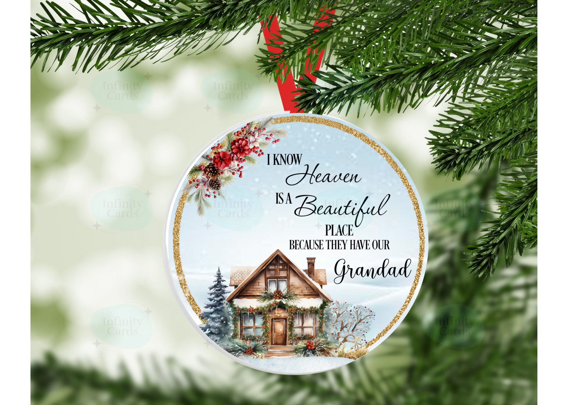 This personalised Christmas tree decoration is a heartfelt tribute to a beloved relative. Featuring the message "I Know Heaven Is A Beautiful Place Because They Have My [Name]," it offers a touching way to remember and celebrate those who are dearly missed during the festive season. Customise it with your relative's name to create a meaningful keepsake that brings comfort and warmth to your holiday decor.