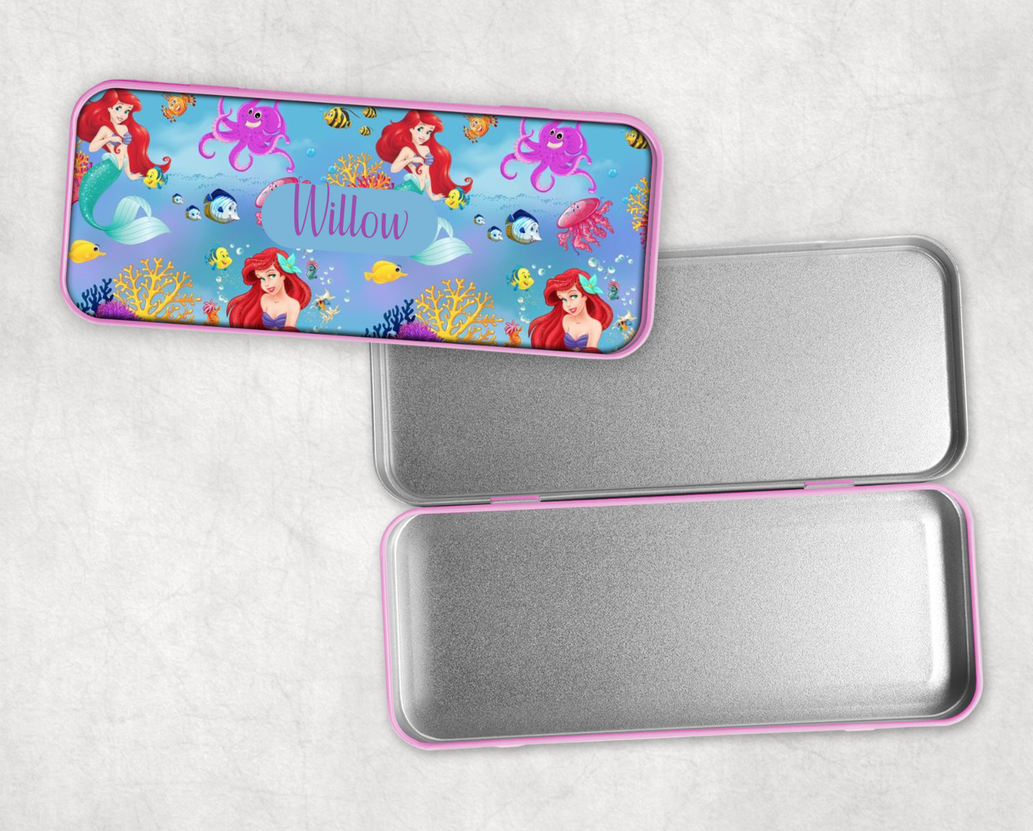 Keep your pencils safe and stylish with our Personalised Little Mermaid Pencil Tin! Featuring a beautiful design, this tin can be customised with your name or initials. Perfect for school or office supplies.