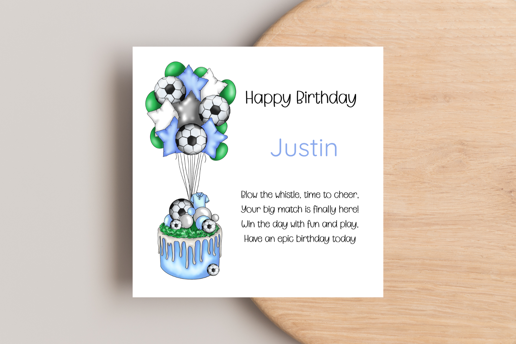 Looking for a unique and stylish birthday card? Look no further than our Personalised Man City Football Team Inspired Birthday Card! With customisable features and a Blue and White football balloon design, this card is perfect for adding a personal touch to your loved one's special day. Show them you care with a truly one-of-a-kind card.