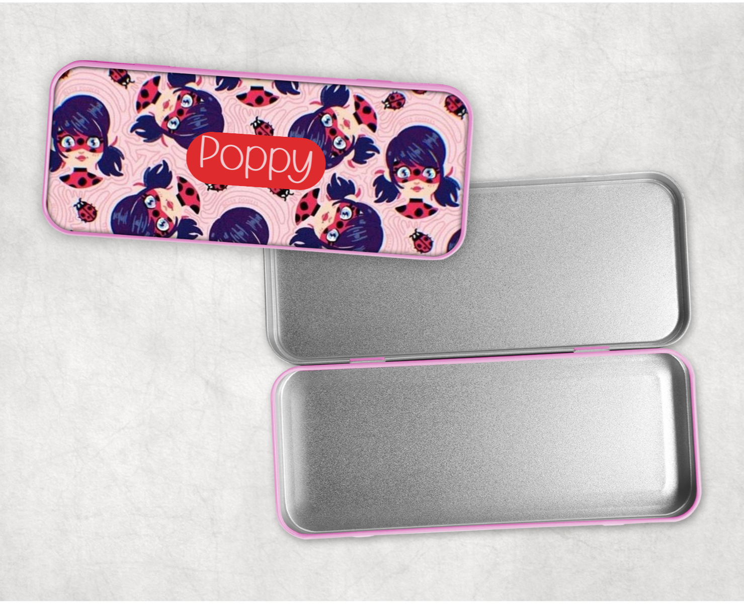 Keep your pencils safe and stylish with our Personalised Miraculous Pencil Tin! Featuring a beautiful design, this tin can be customised with your name or initials. Perfect for school or office supplies.