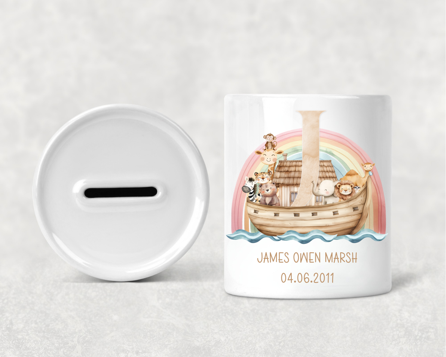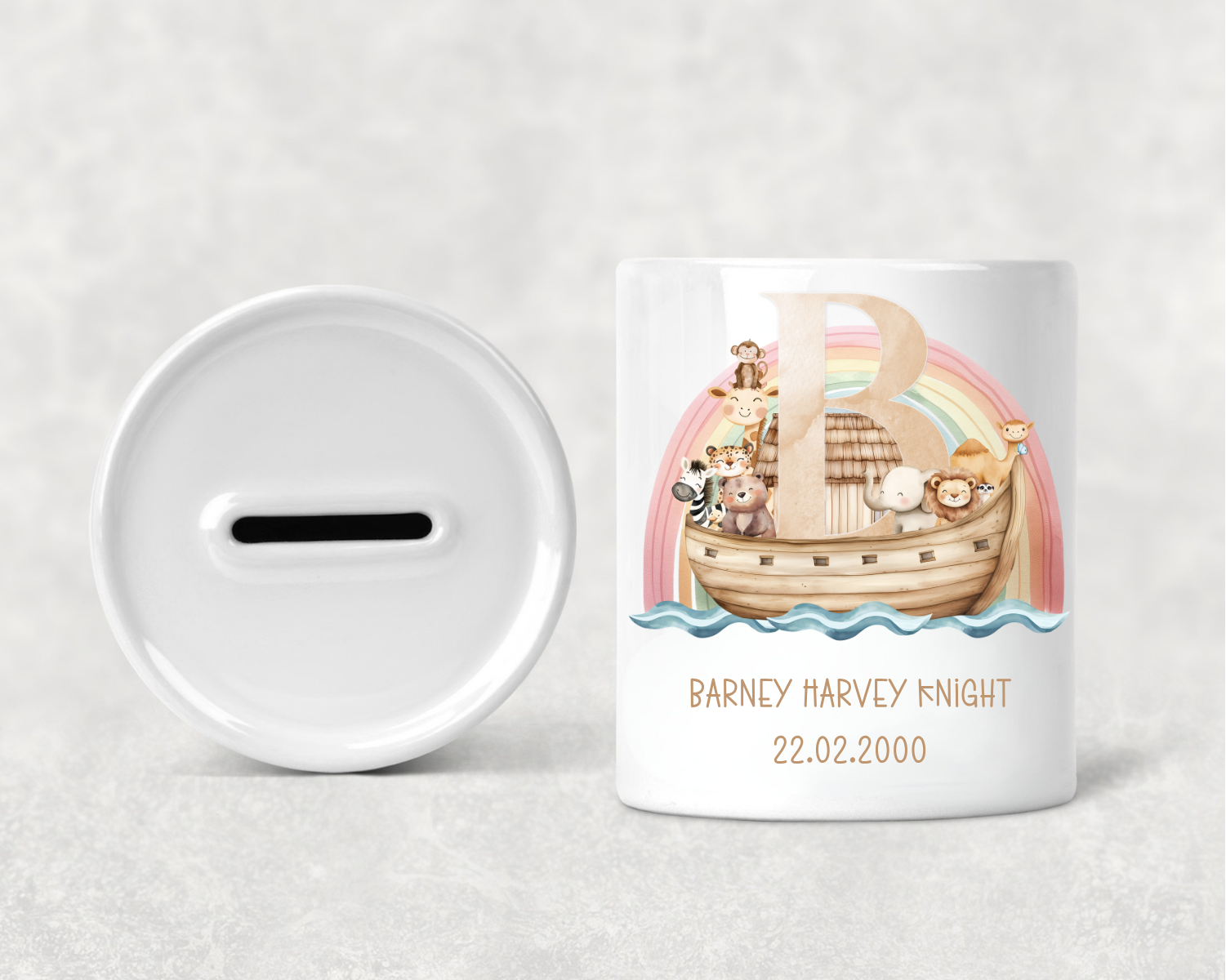 Make saving fun with this Personalised Noah's Ark Money Box! Featuring charming animal designs and a bright blue finish, it’s perfect for encouraging little ones to stash their coins. Personalise it with a name to create a special keepsake that grows with your child’s savings. A playful and practical gift that adds joy to every penny saved.