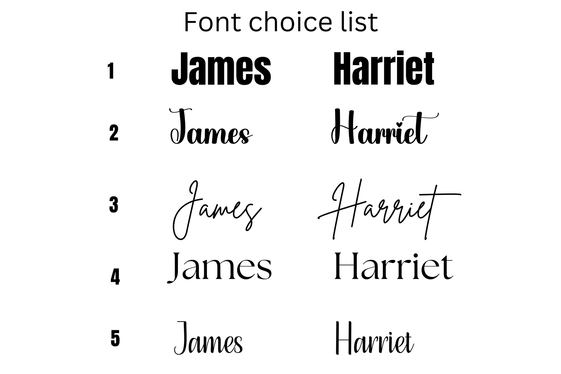 Select your chosen coloured bag and font from the drop down menu and leave us do the rest.