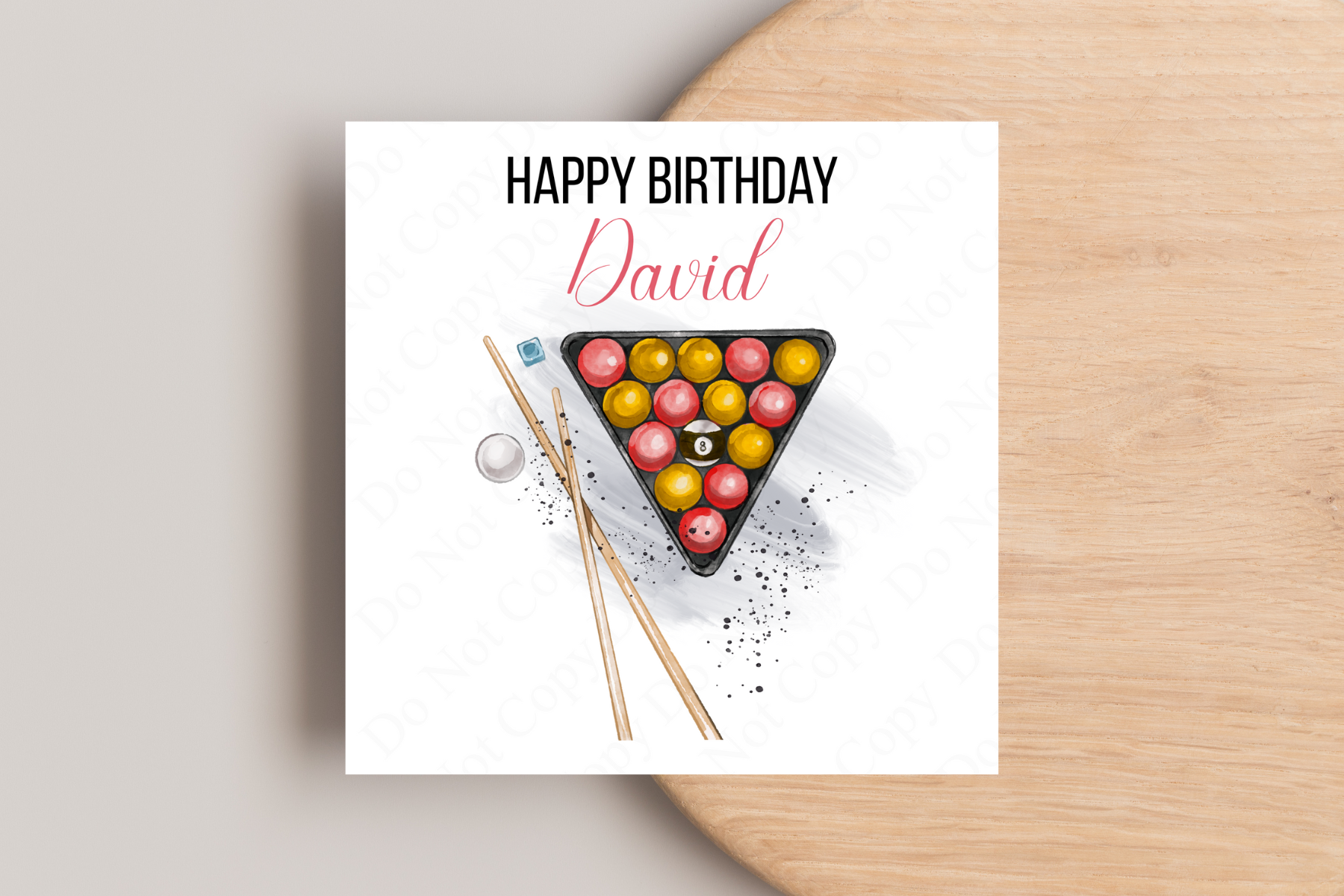 This personalised birthday card features a traditional pool design making it perfect for any pool enthusiast. A unique and thoughtful way to celebrate their special day.
