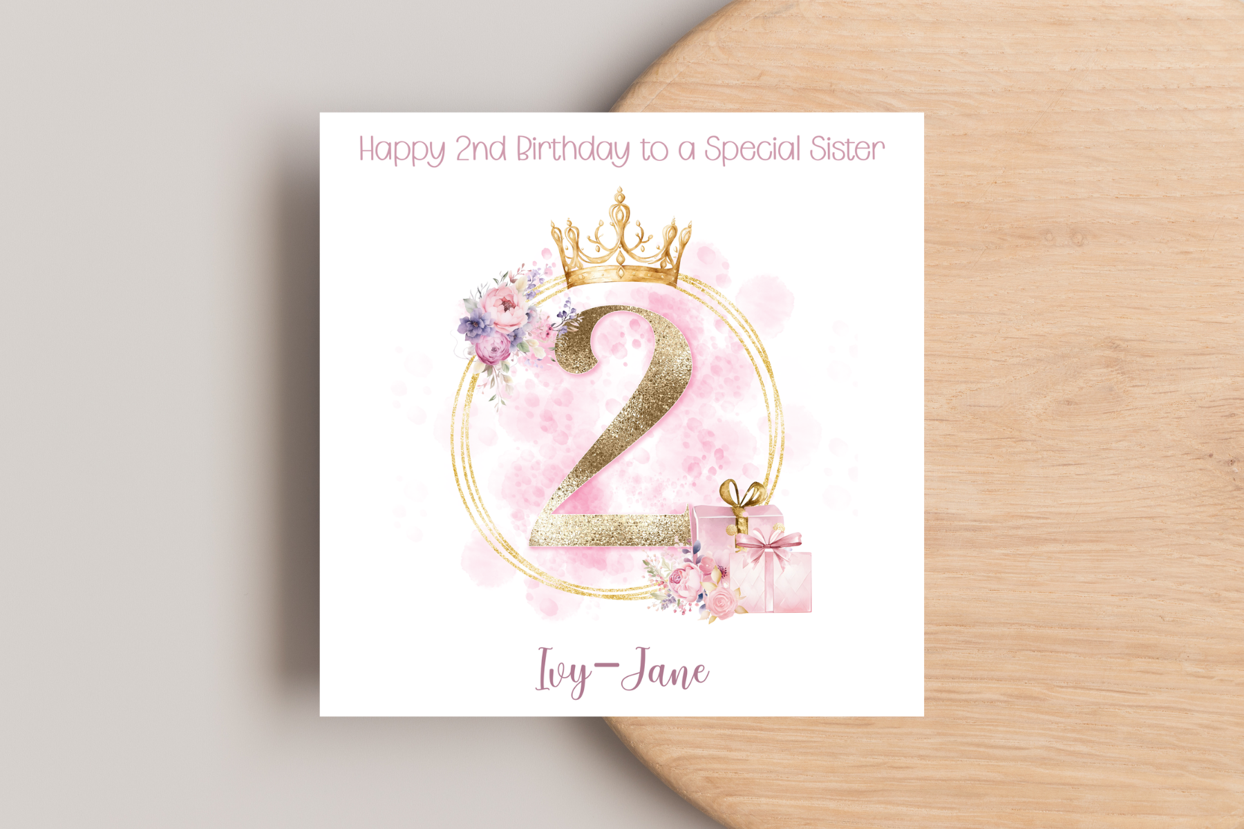 Celebrate your little princess's 2nd birthday with our personalised Princess Inspired Birthday Card! Featuring a stunning pink and gold design, this card is sure to make her feel like royalty. Make it extra special by personalising it just for her. A perfect way to show your love and make her birthday even more magical.