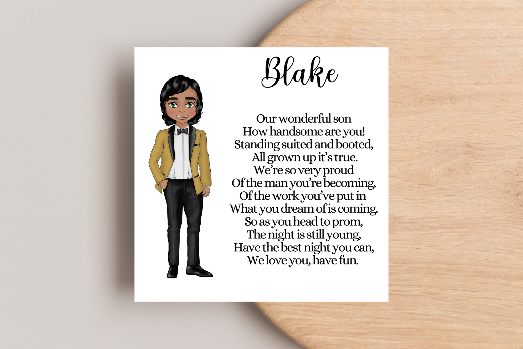 Show the special young man in your life, how proud you are of him ahead of his prom with out personalised Card with loving poem.