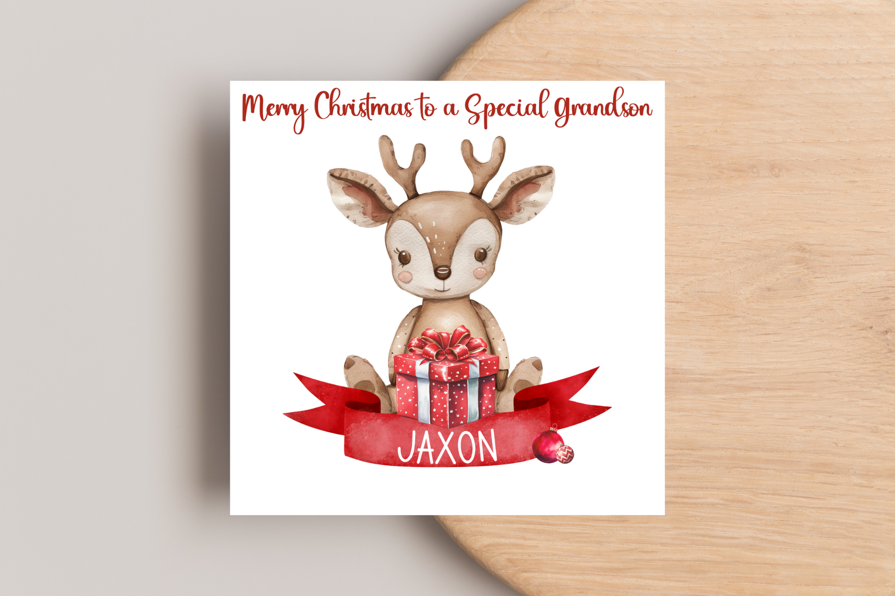 Add a personal touch to your holiday greetings with our Personalised Reindeer Christmas card. Choose from 3 charming colour choices to make your cards truly unique. Spread joy and cheer this season with a one-of-a-kind card for loved ones.