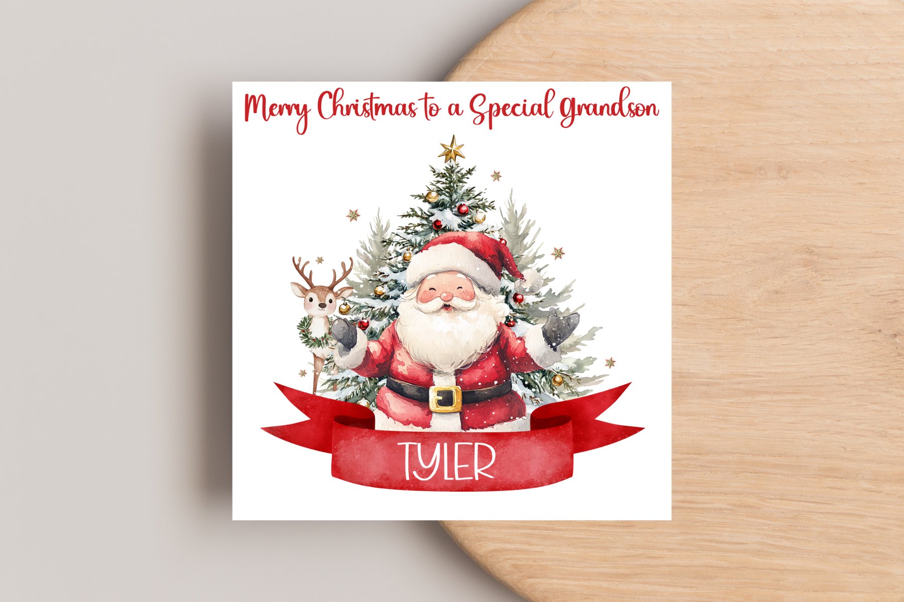 Celebrate the magic of Christmas with our Personalised Santa Christmas Card. Choose between two charming designs—one featuring Santa by a festive tree and another with a fallen star. Each card can be customised to add a personal touch, making your holiday greetings warm and memorable. Perfect for sharing joy and spreading festive cheer with loved ones.