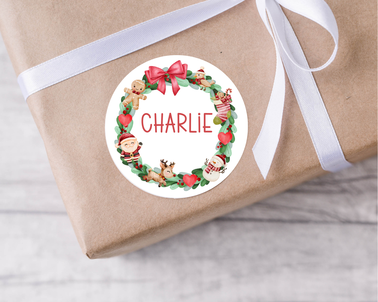 Personalised Santa Wreath Christmas Present Labels
