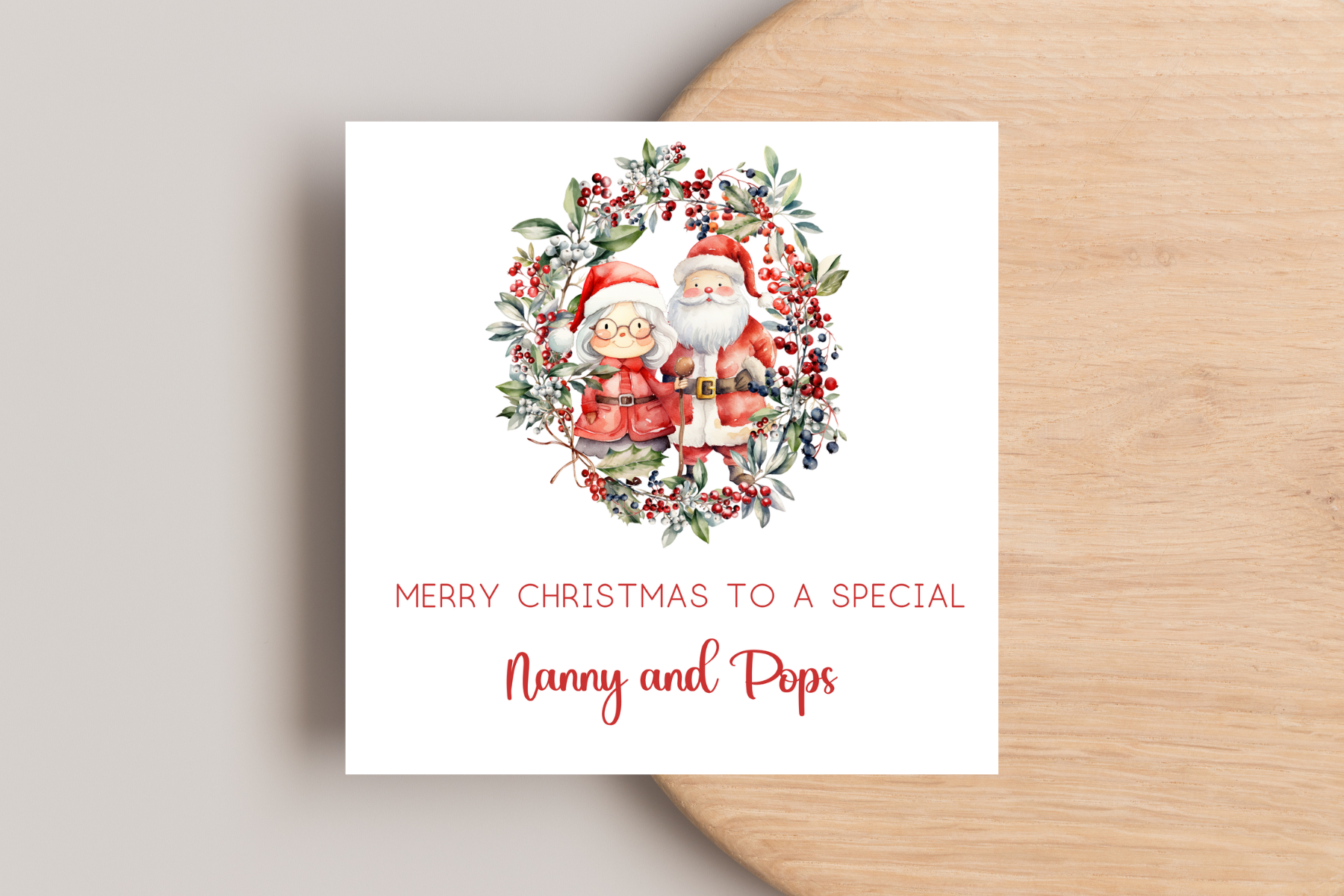 Personalised Santa and Mrs Claus in Wreath Christmas Card